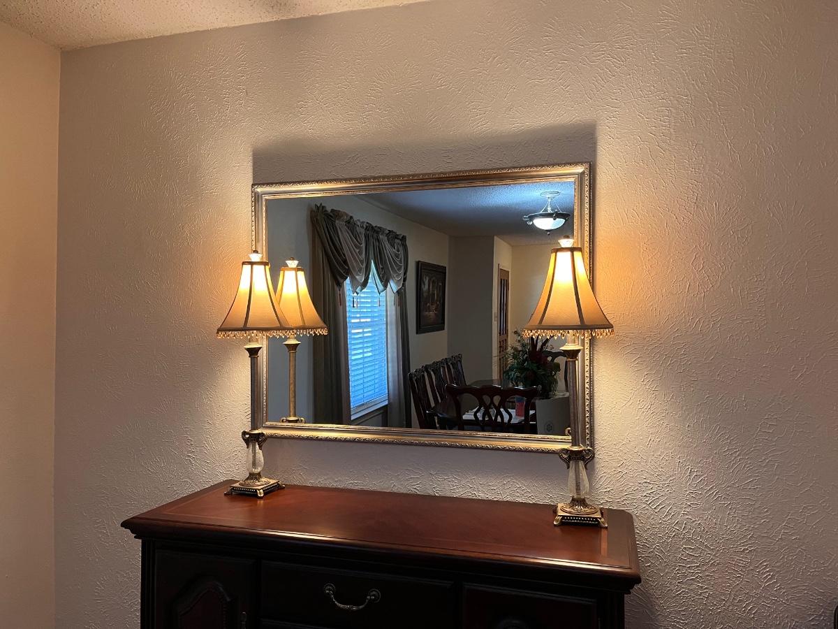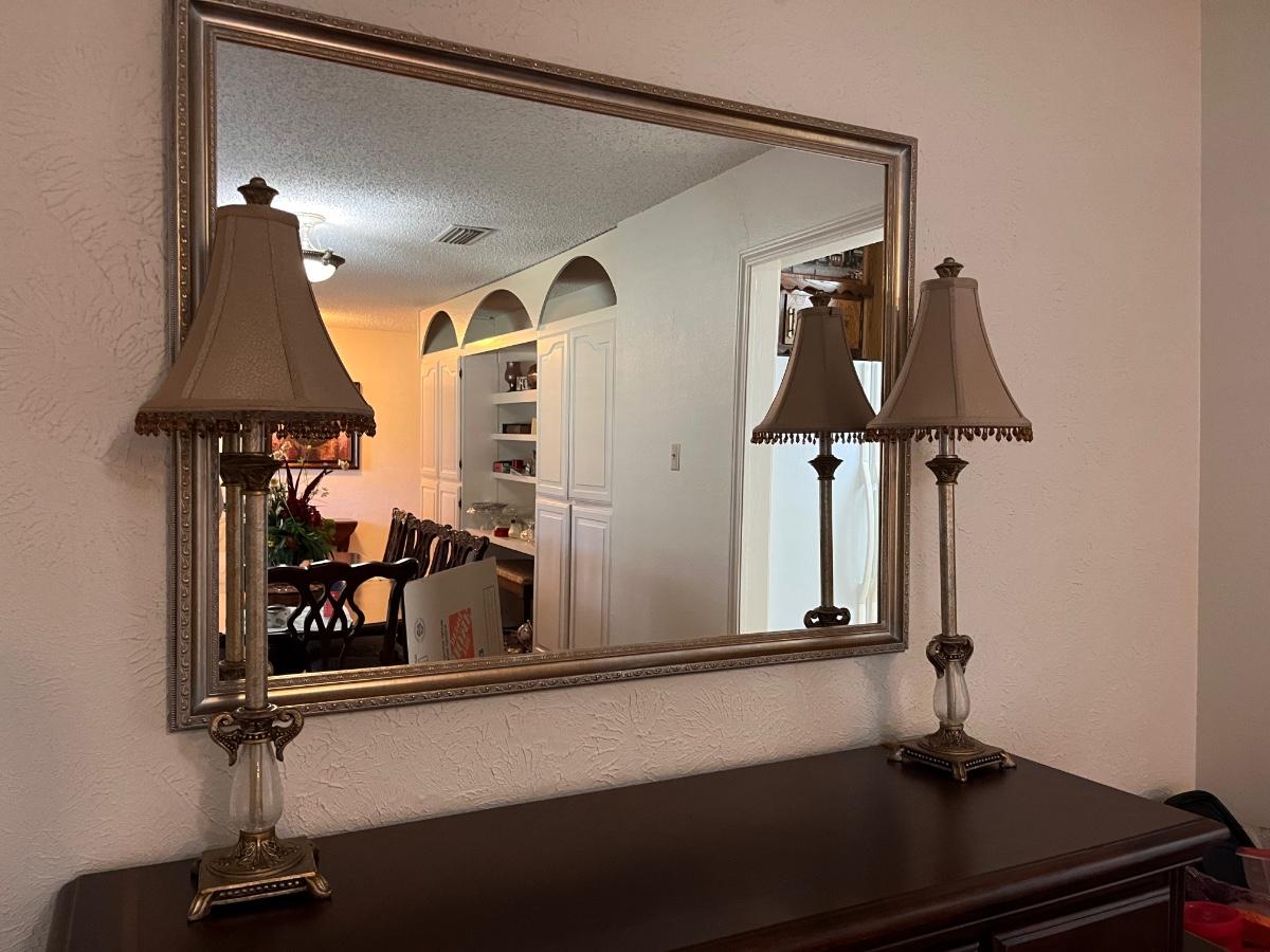 Mirror and 2 glass lamps