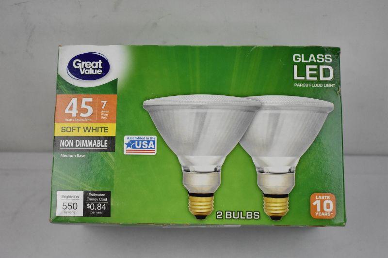 2 Glass LED Flood Lights, Soft White, 45W Equivalent, Brightness 550 Lumens - New