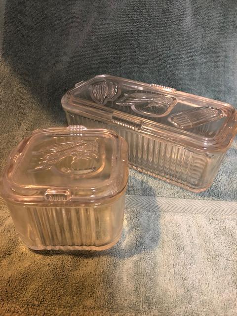 2 Federal Glass Vintage/Retro Refrigerator Dishes with Lids.