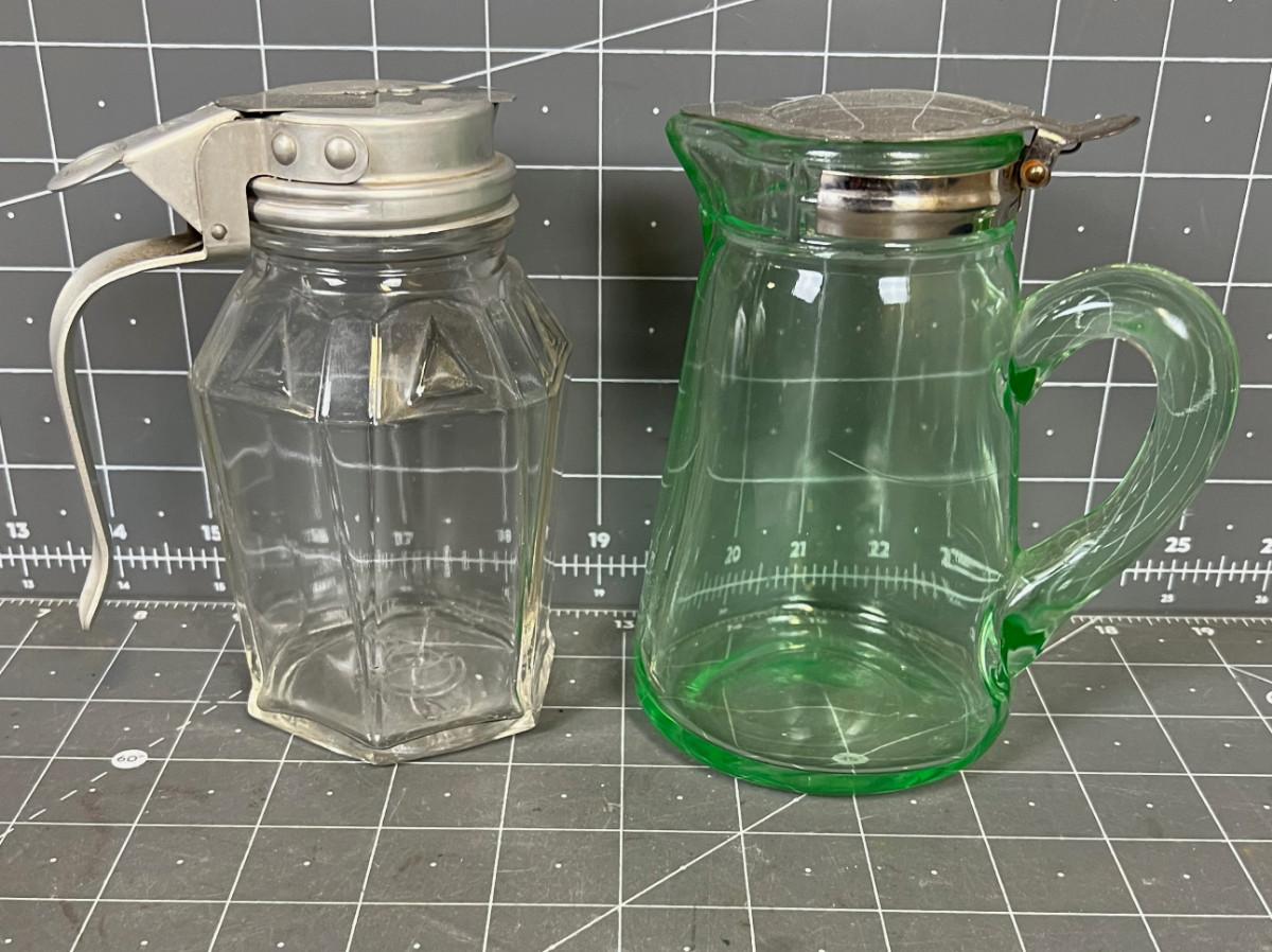 (2) Glass Syrup Pitchers, Vintage