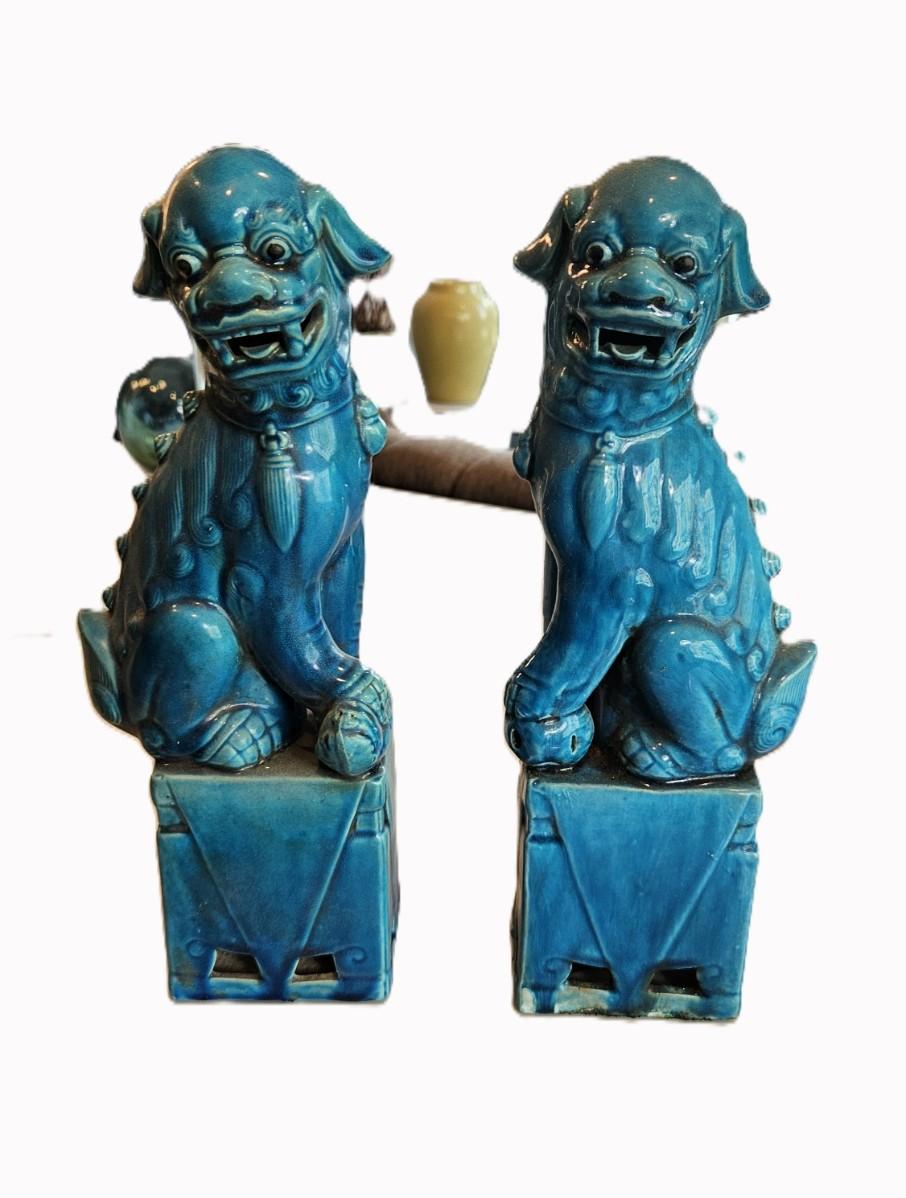 2 Glazed Foo Dogs, 13 H