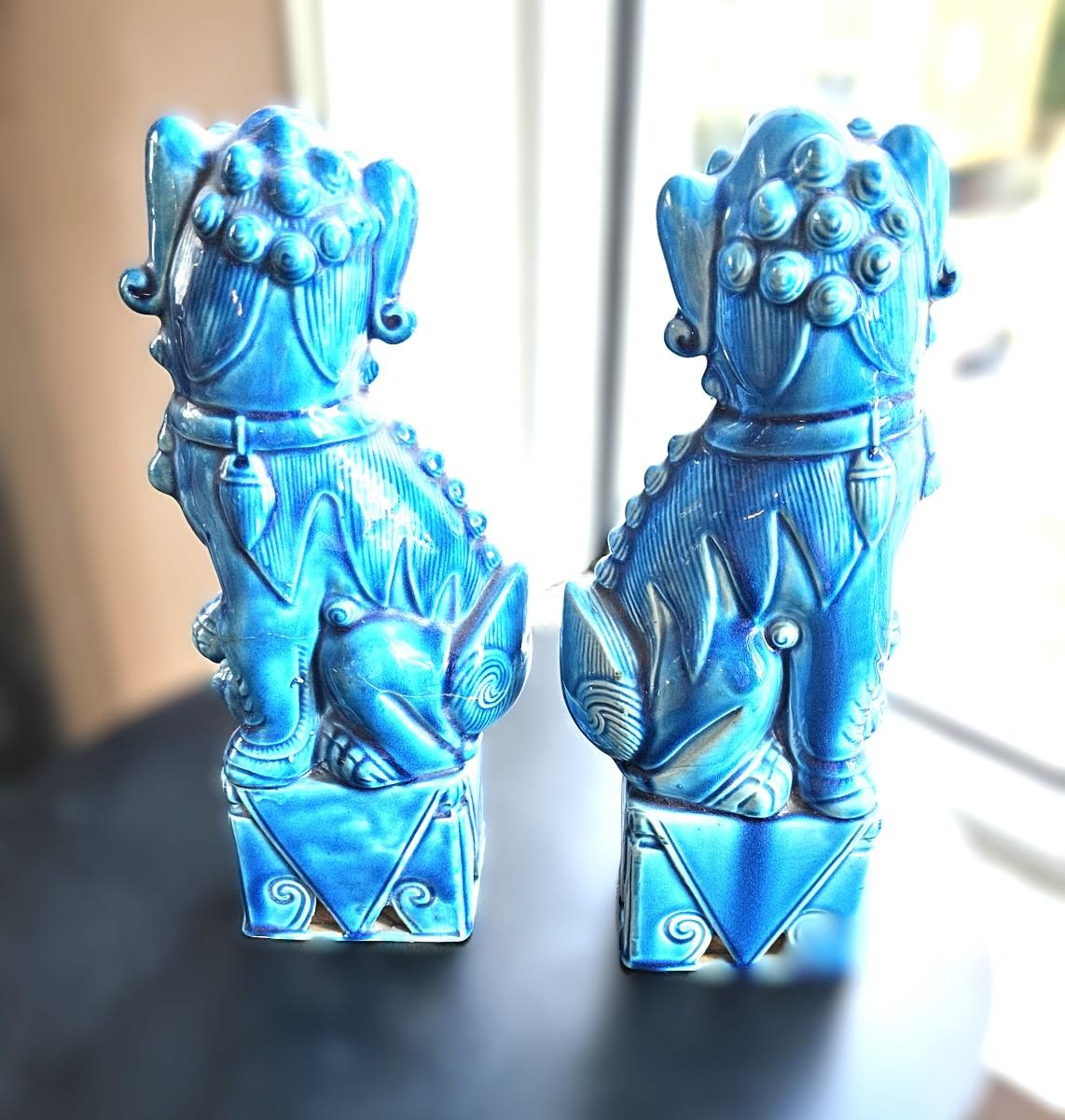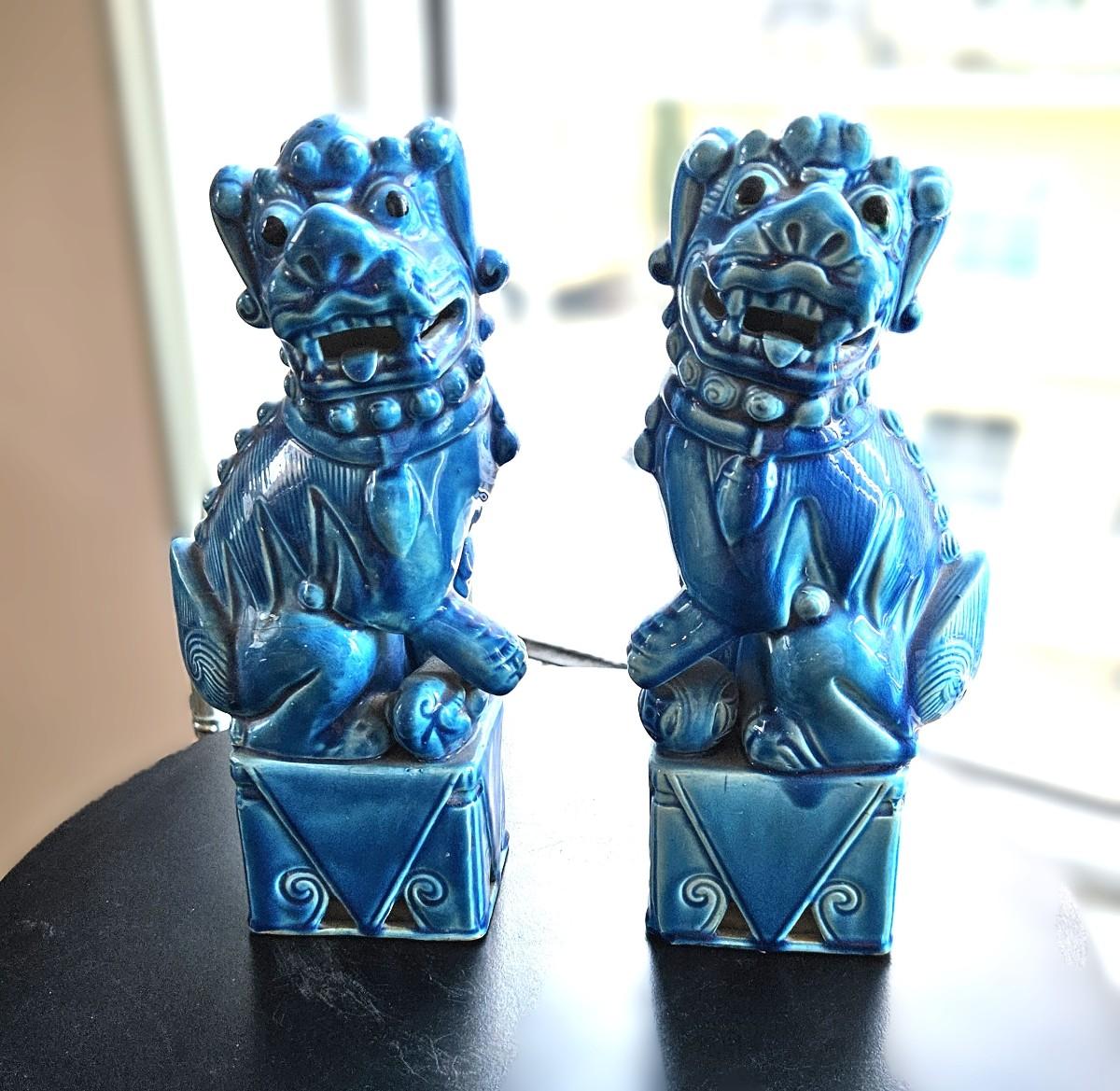 2 Glazed FOO Dogs, 9 1/2 H