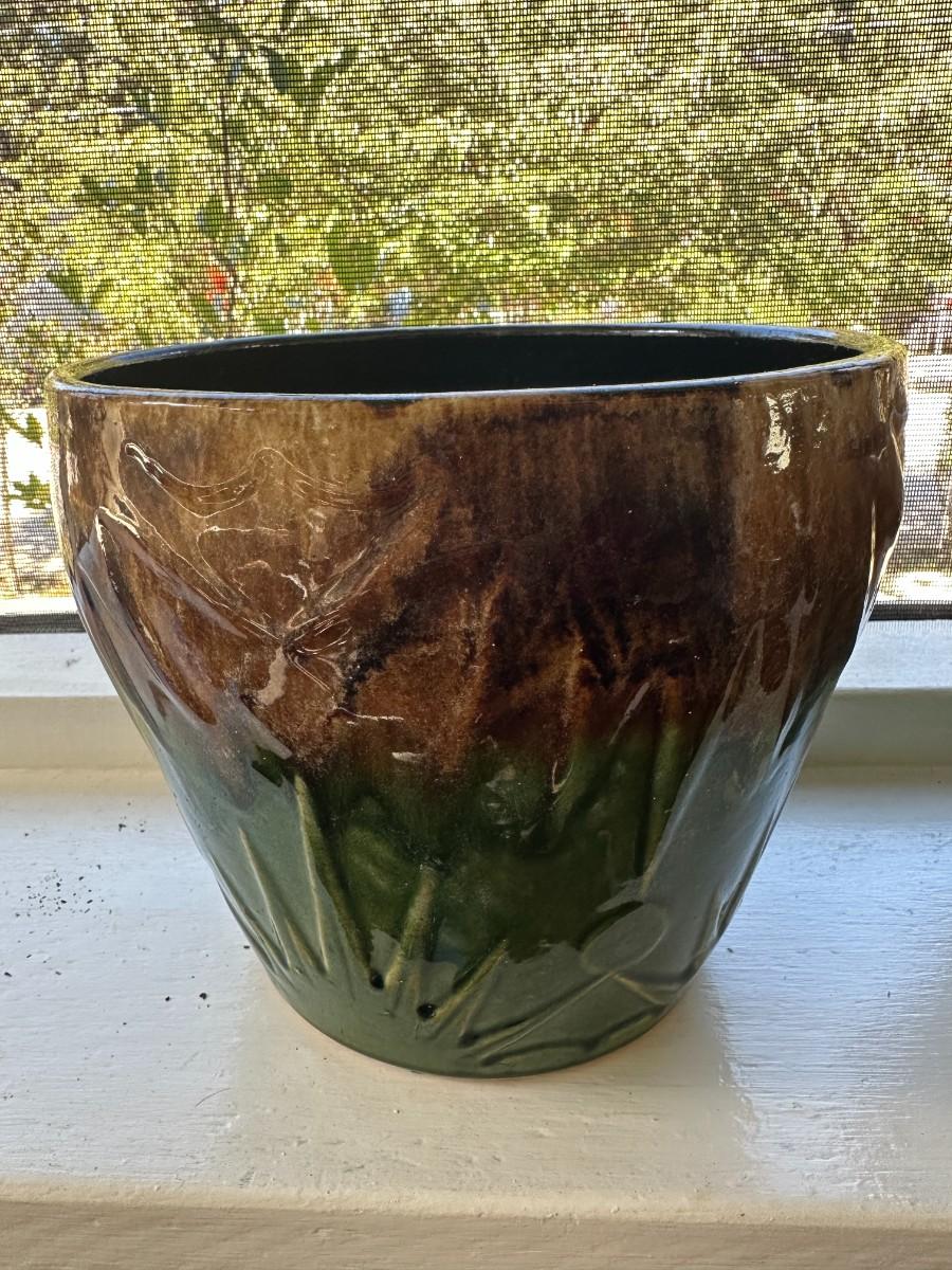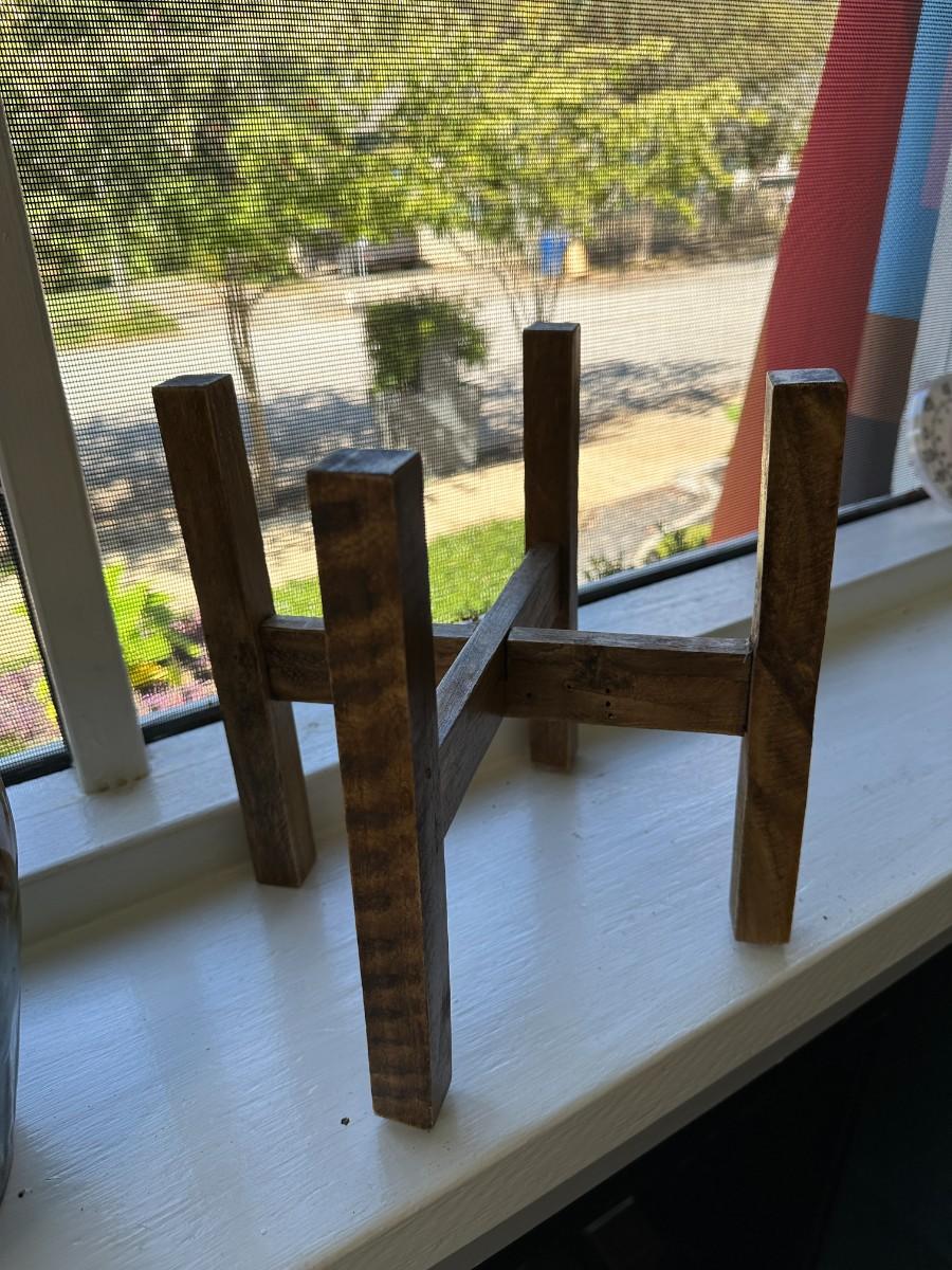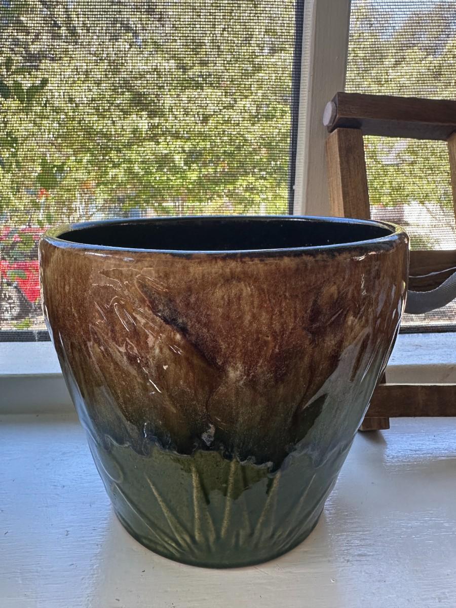 Lg Glazed Pot is 9"w x8"h, smaller pot is 8"w x 7"h. Inside of stands measure 8/5"w