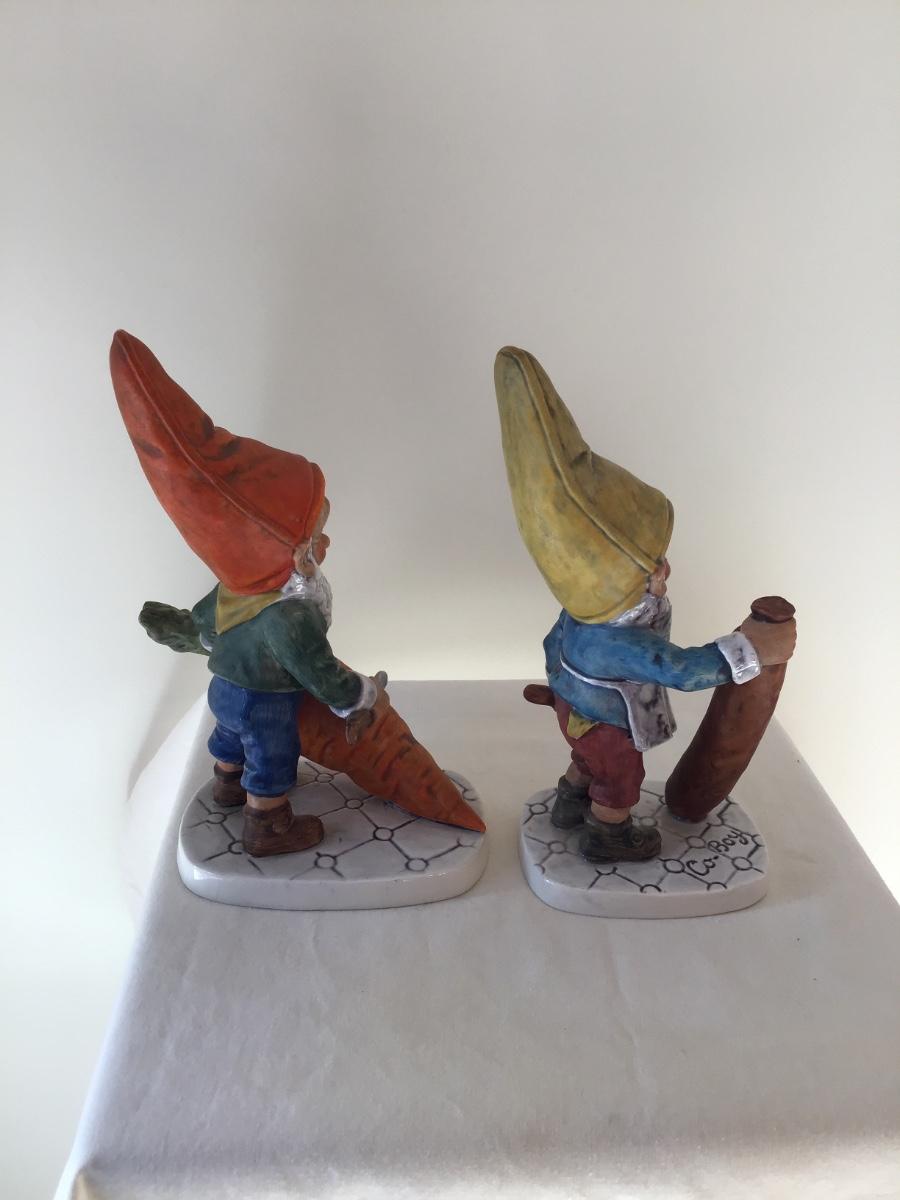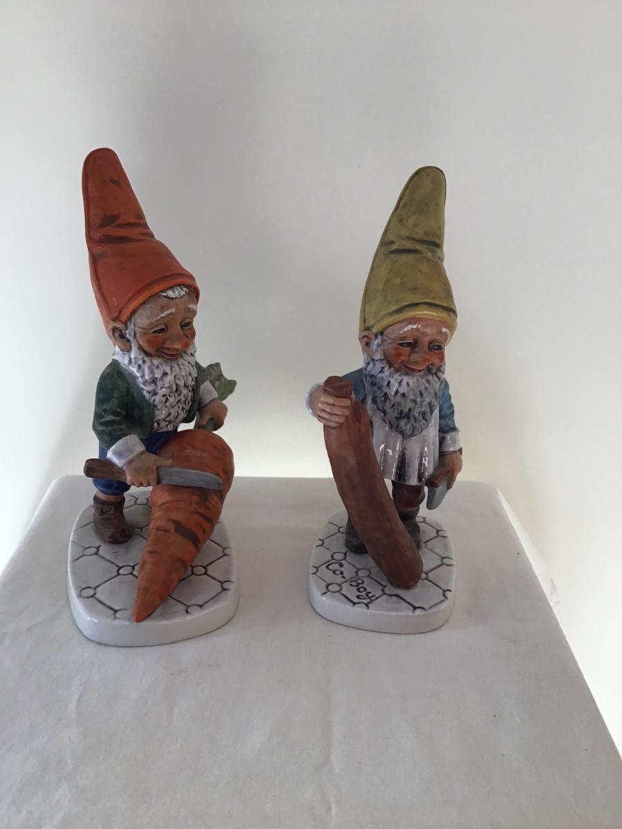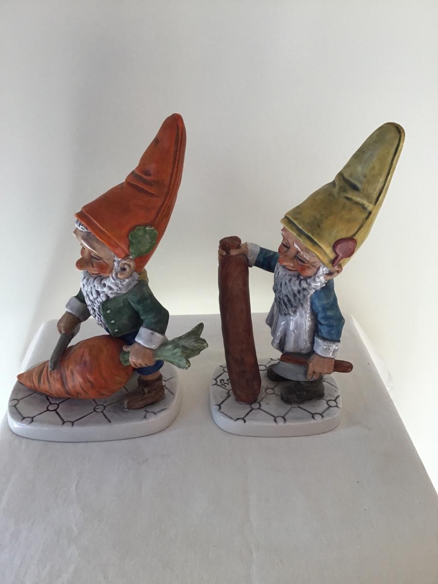 GOEBEL W. Germany Gnome Figurines Co-Boy Figurine Robby The Vegetarian Gnome and The Sausage Maker