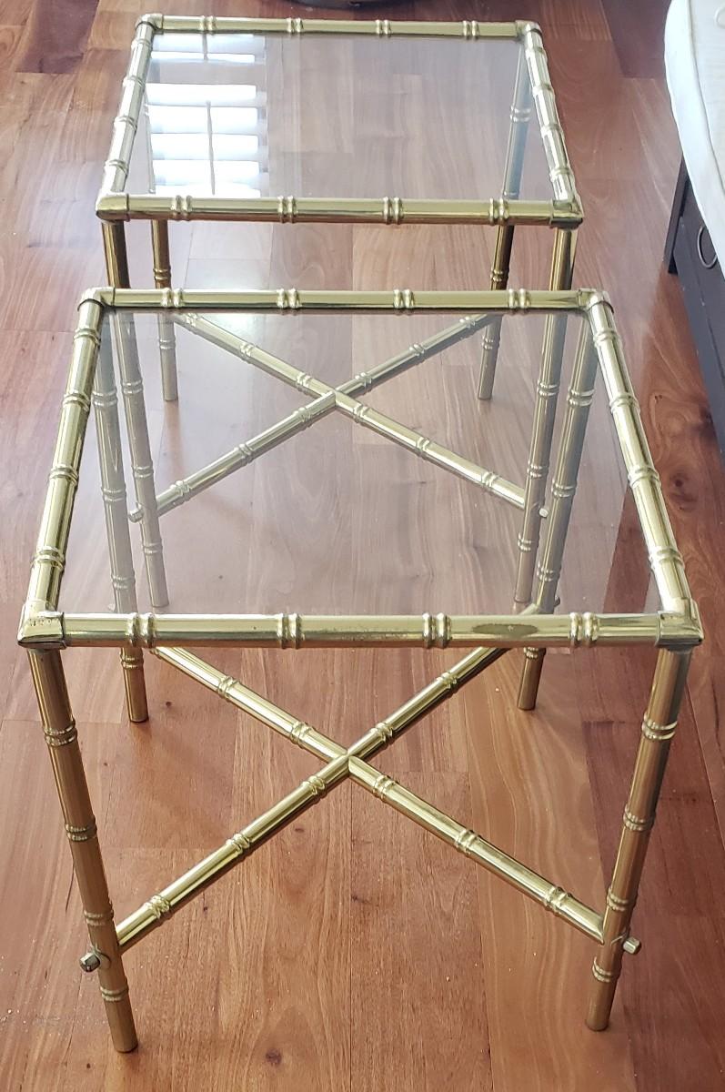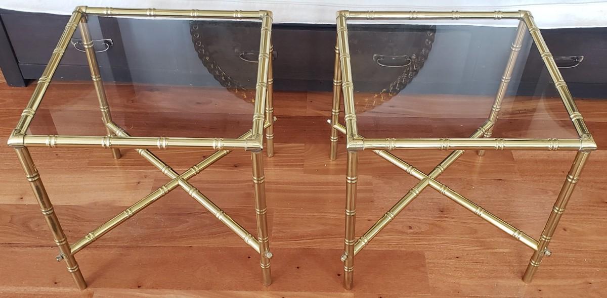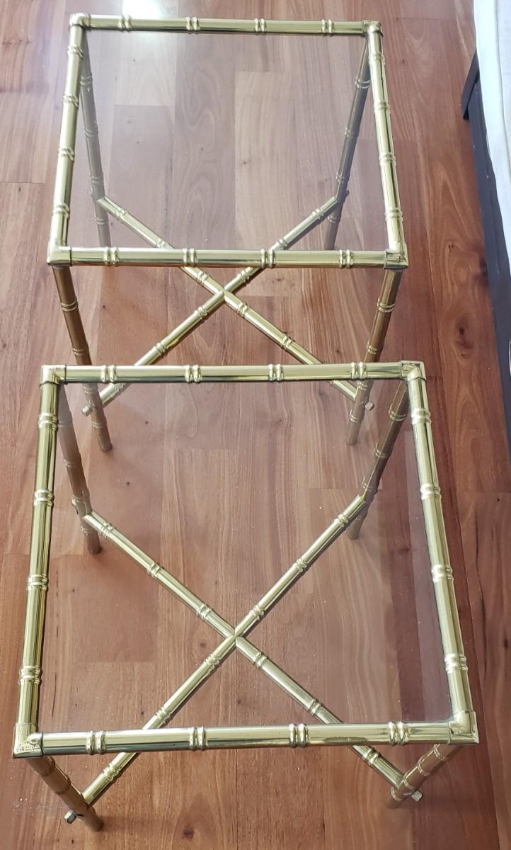 2 Gold Bamboo Glass Tables