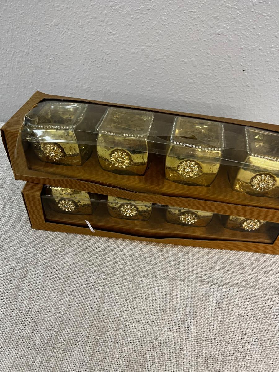 2 Gold Glass Votive Holders NEW