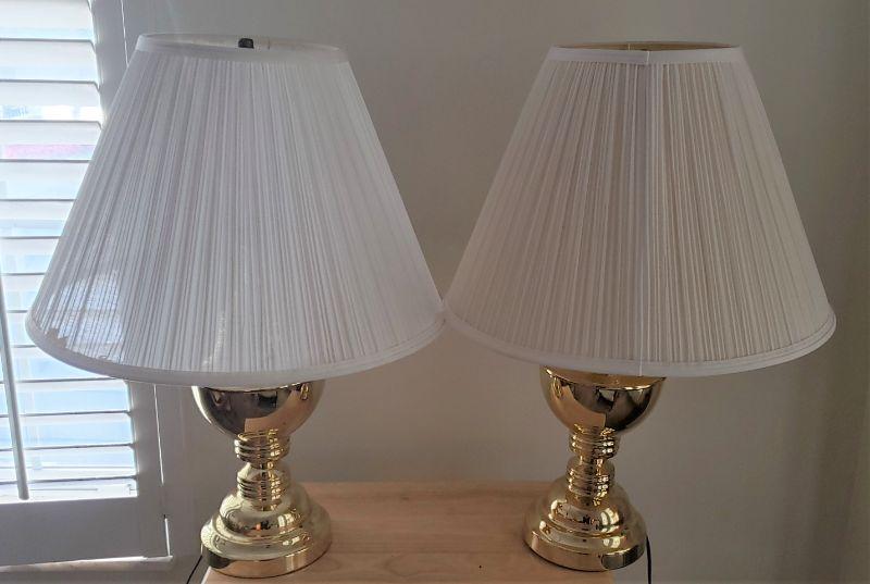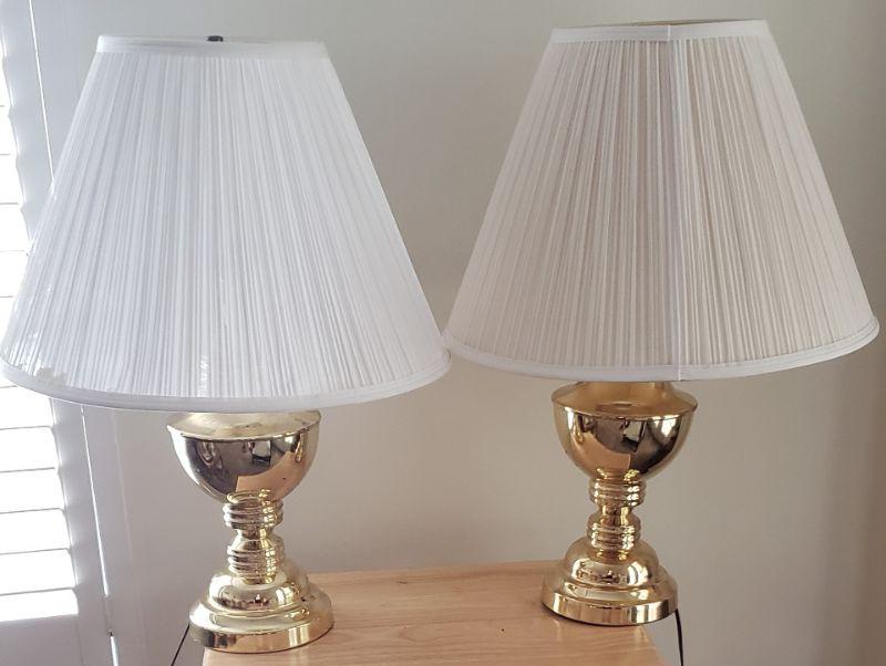 2 Gold Lamps with White Shades