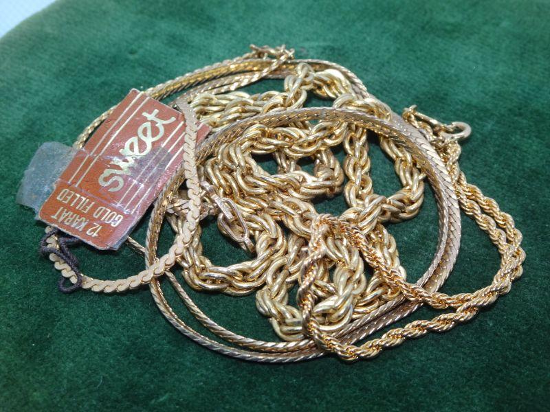 2 Gold Tone Bracelets, 2 Gold Tone Necklaces, Gold Filled