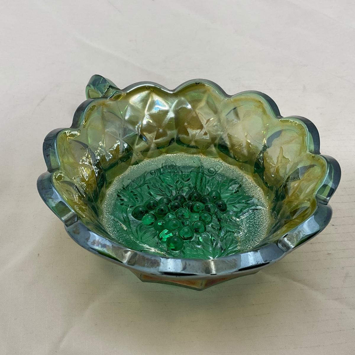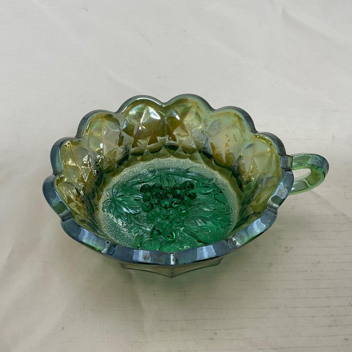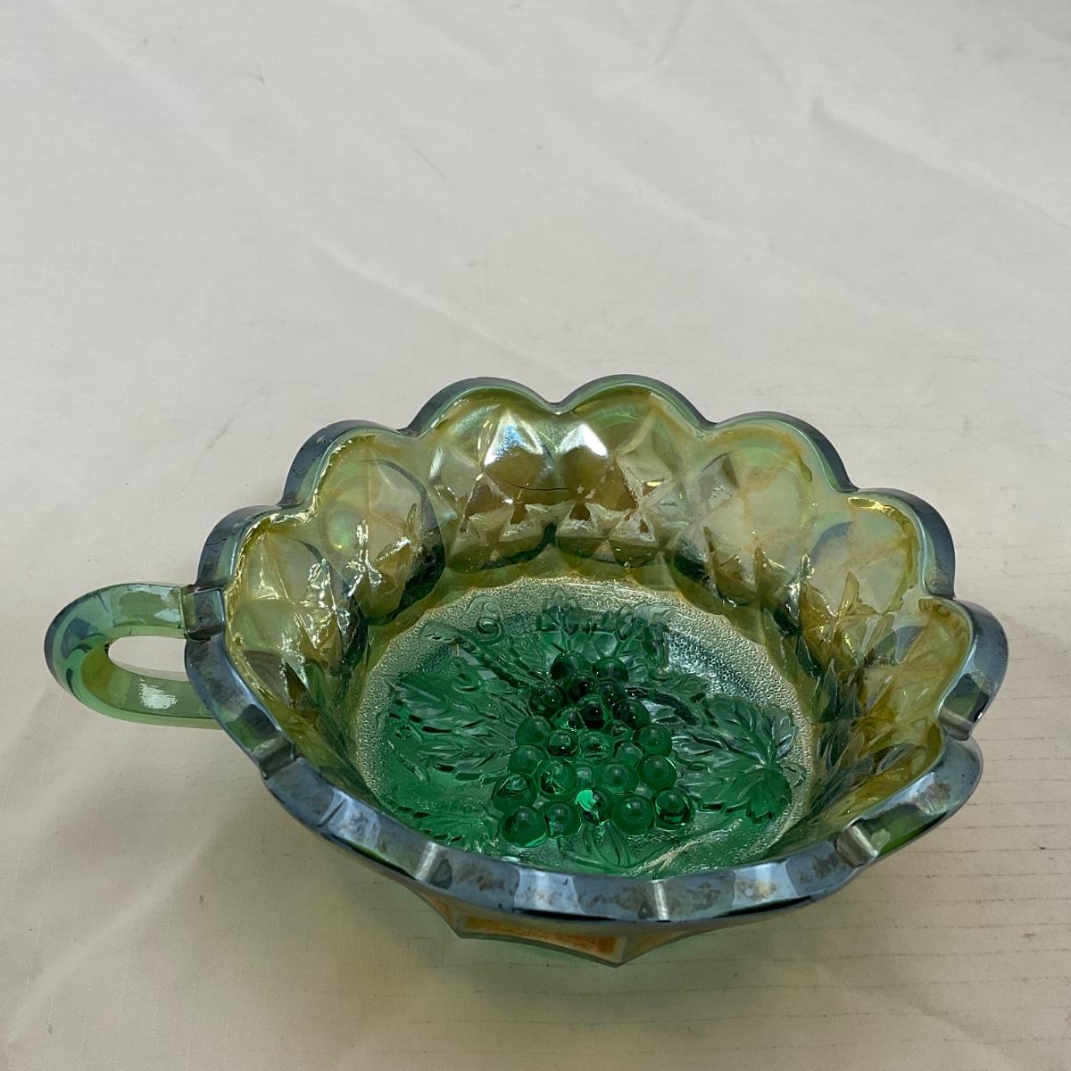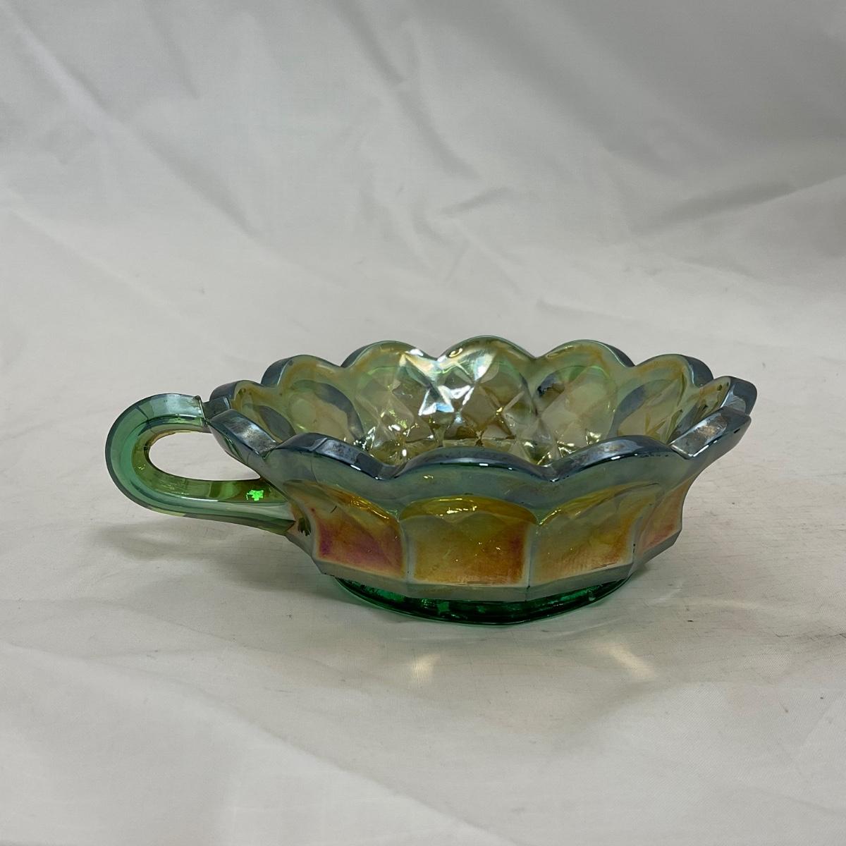 -2- Green Carnival Glass | Imperial Style Nappy Dish