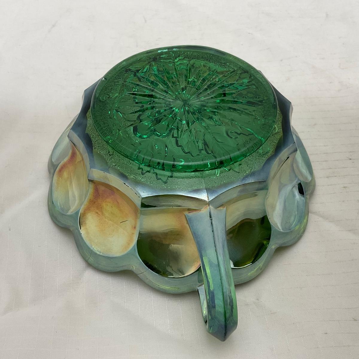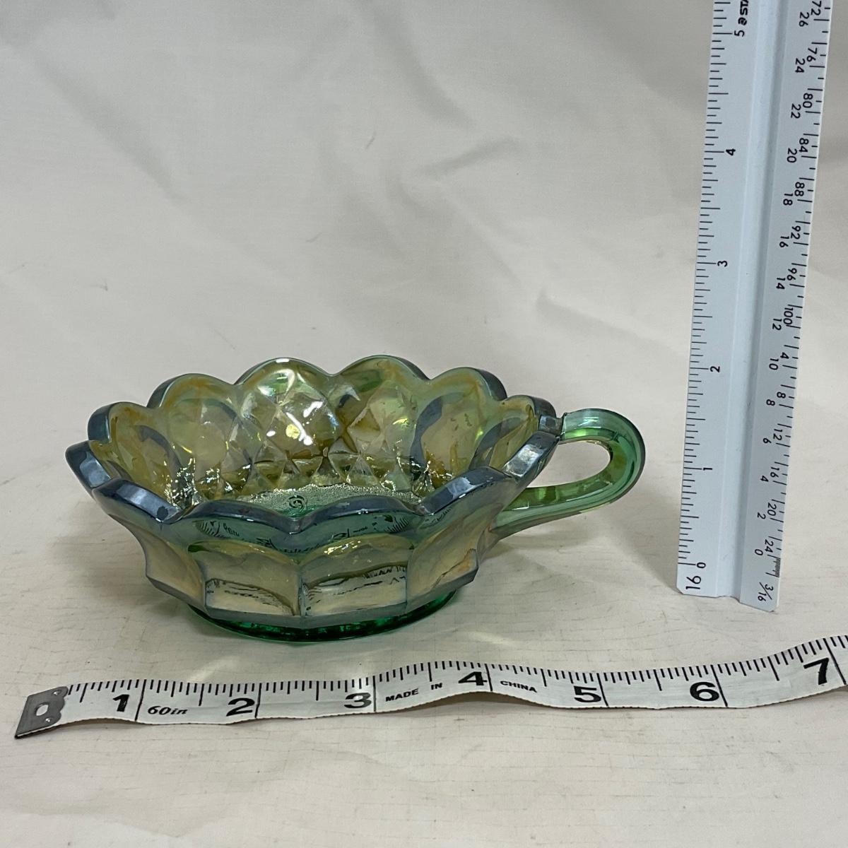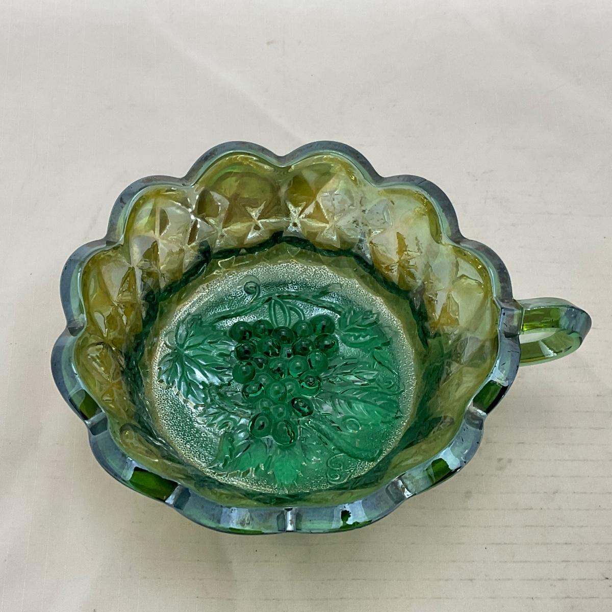 -2- Green Carnival Glass | Imperial Style Nappy Dish