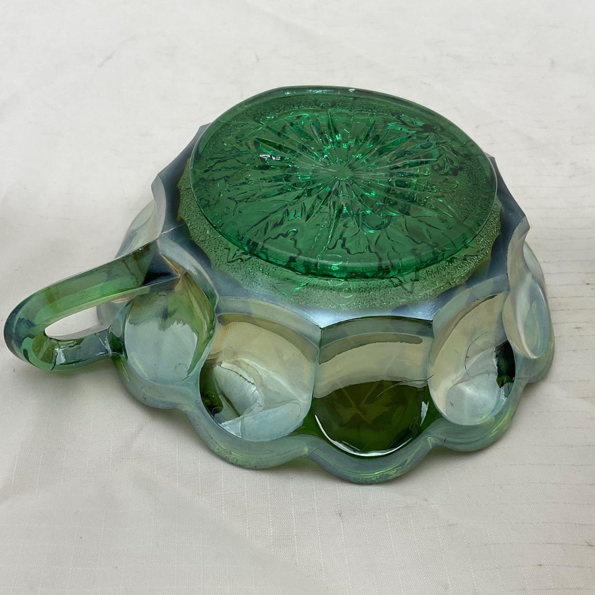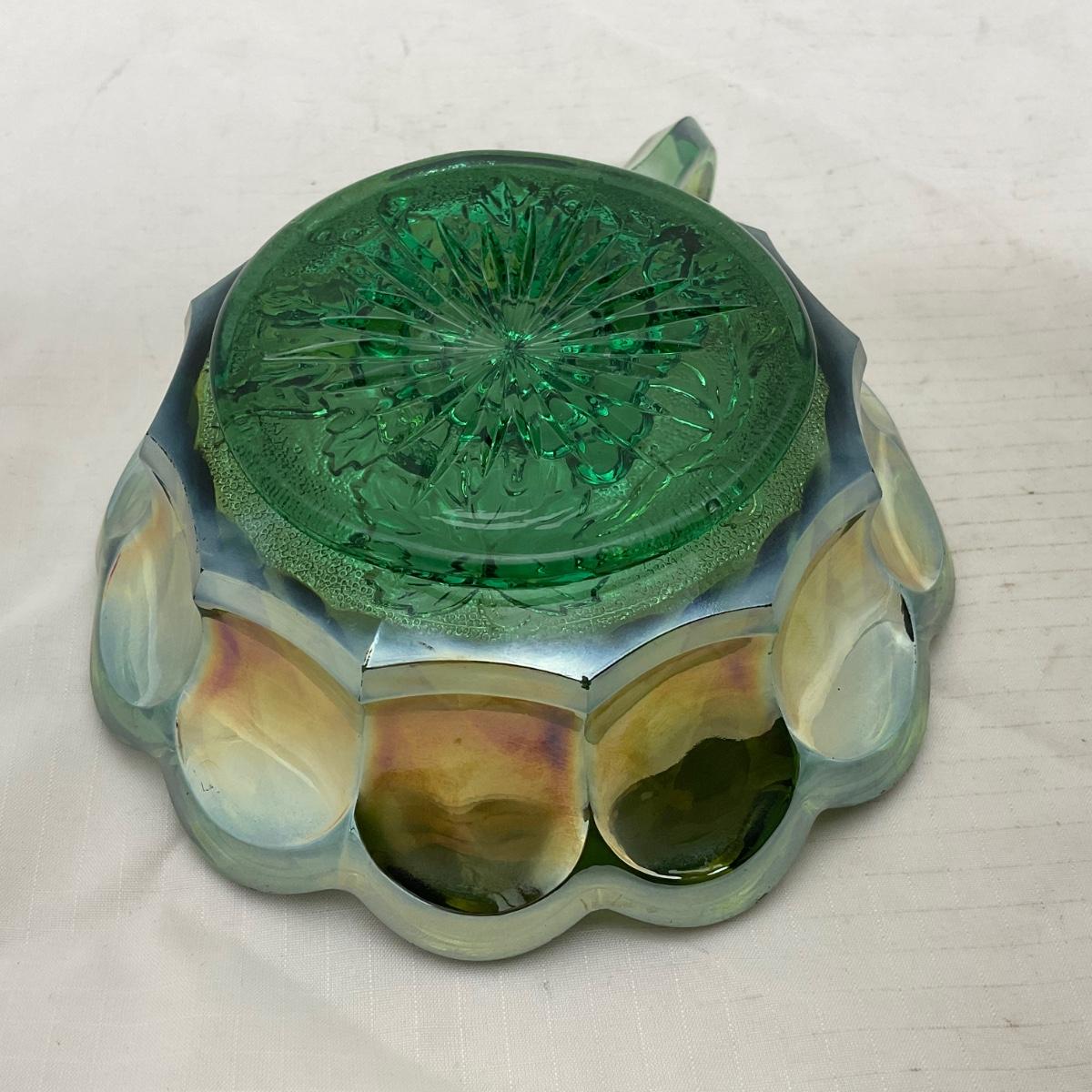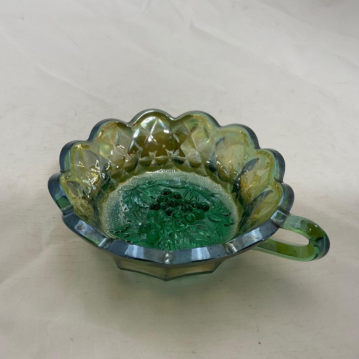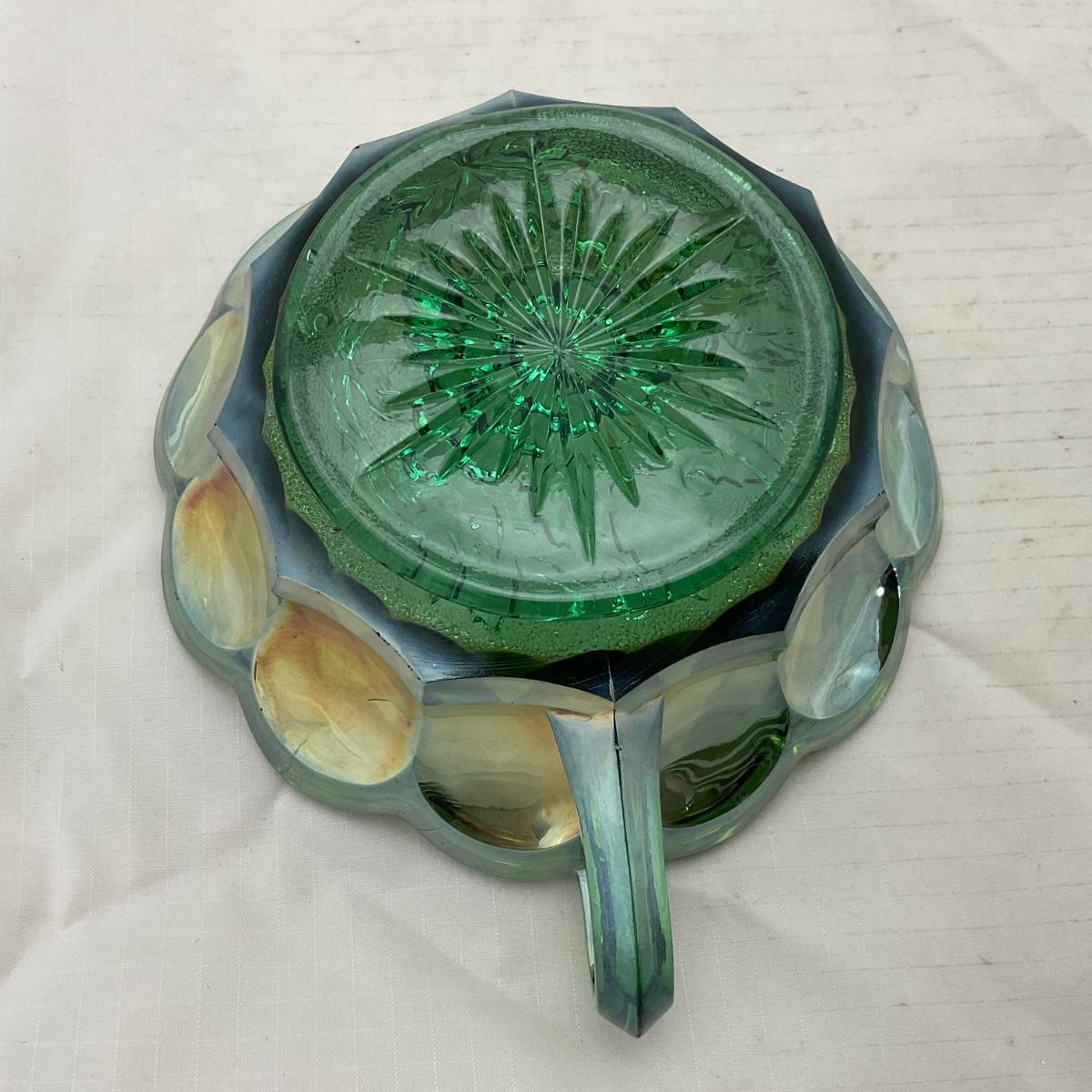 -2- Green Carnival Glass | Imperial Style Nappy Dish