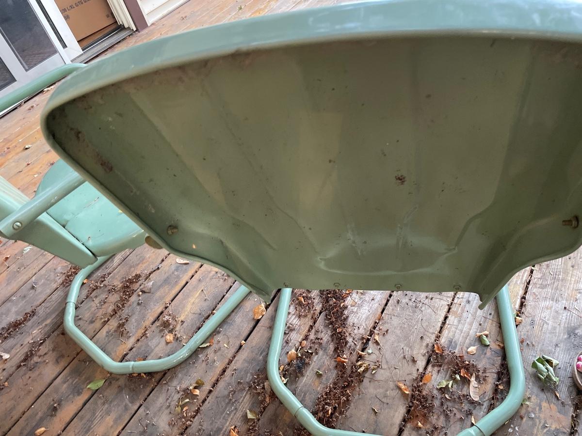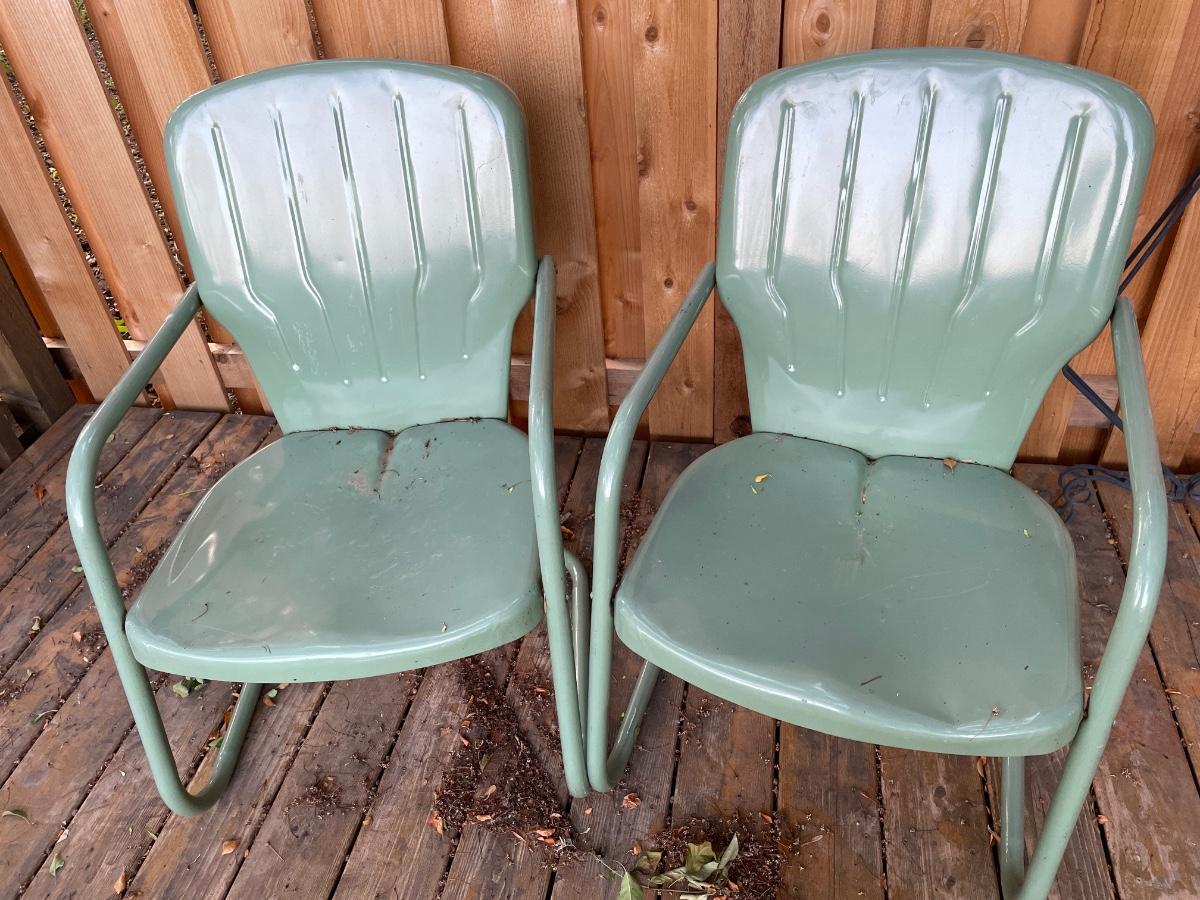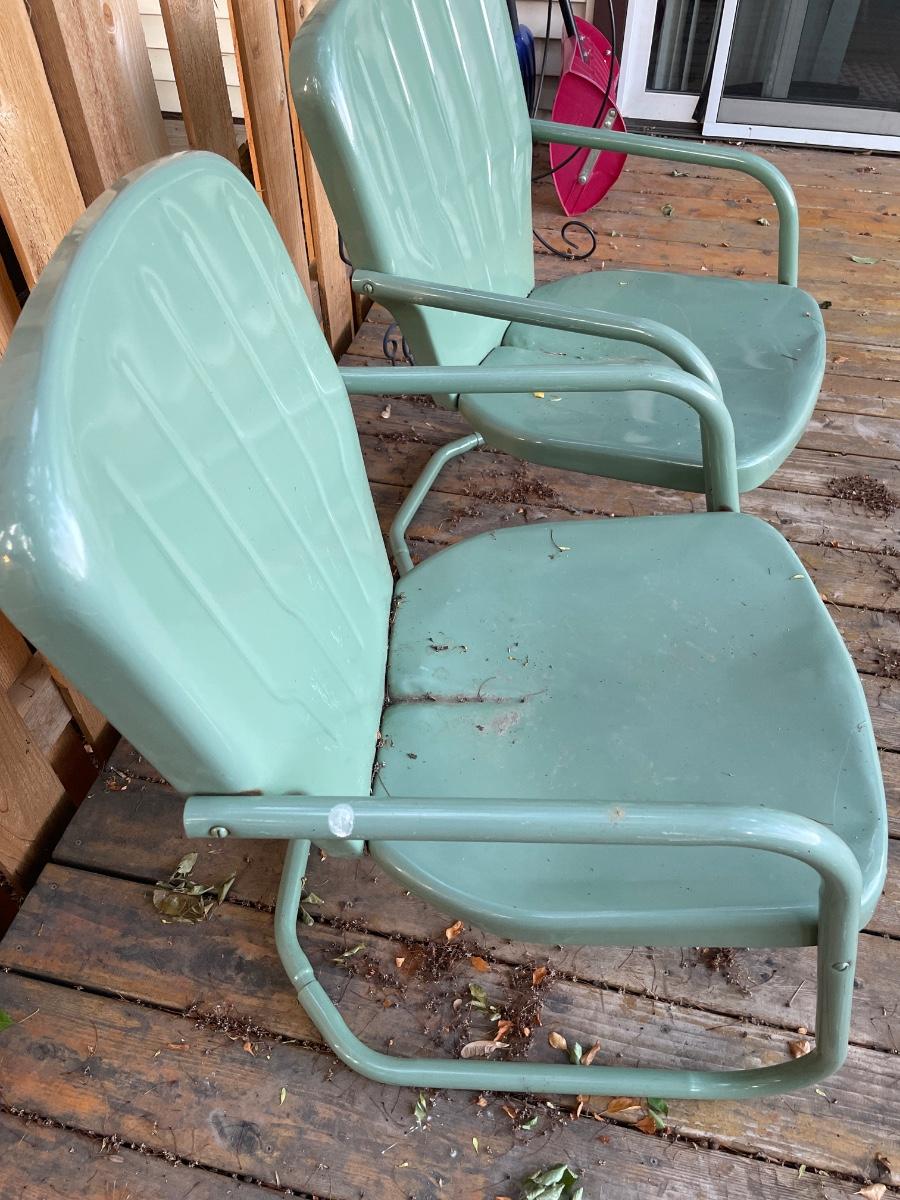 2 green metal lawn chairs