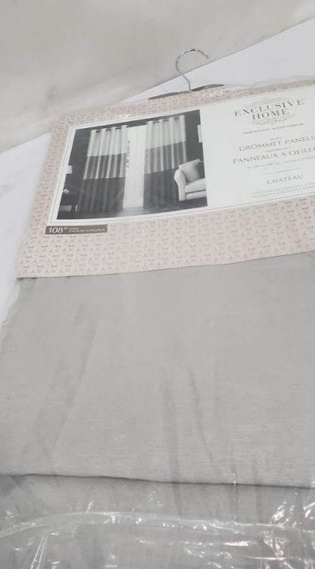 2 Grey Grommet Panels, Chateau Dove Grey, 54"x108", Exclusive Home - New
