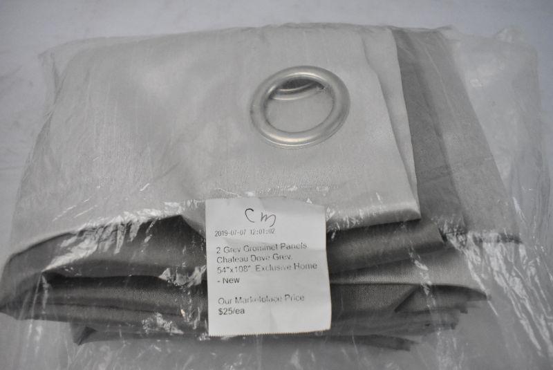 2 Grey Grommet Panels, Chateau Dove Grey, 54"x108", Exclusive Home - New
