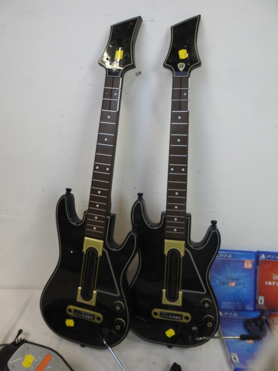 2 Guitar Hero Guitars, Rockband Petal and Microphone, Infinity and PlayStation Games