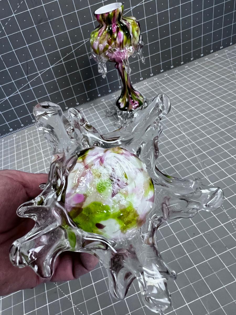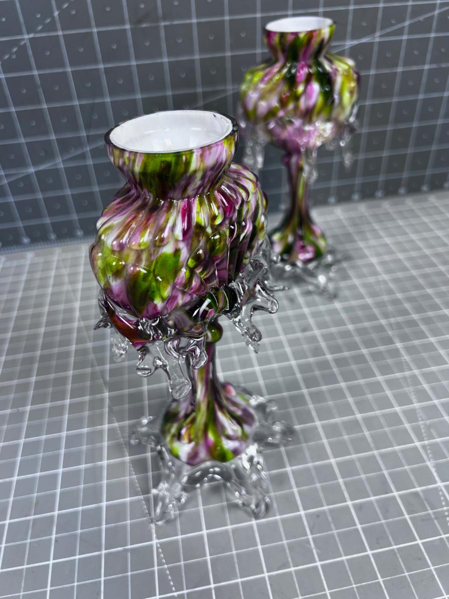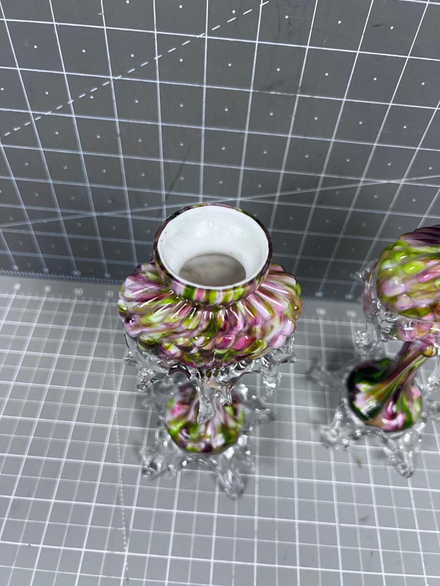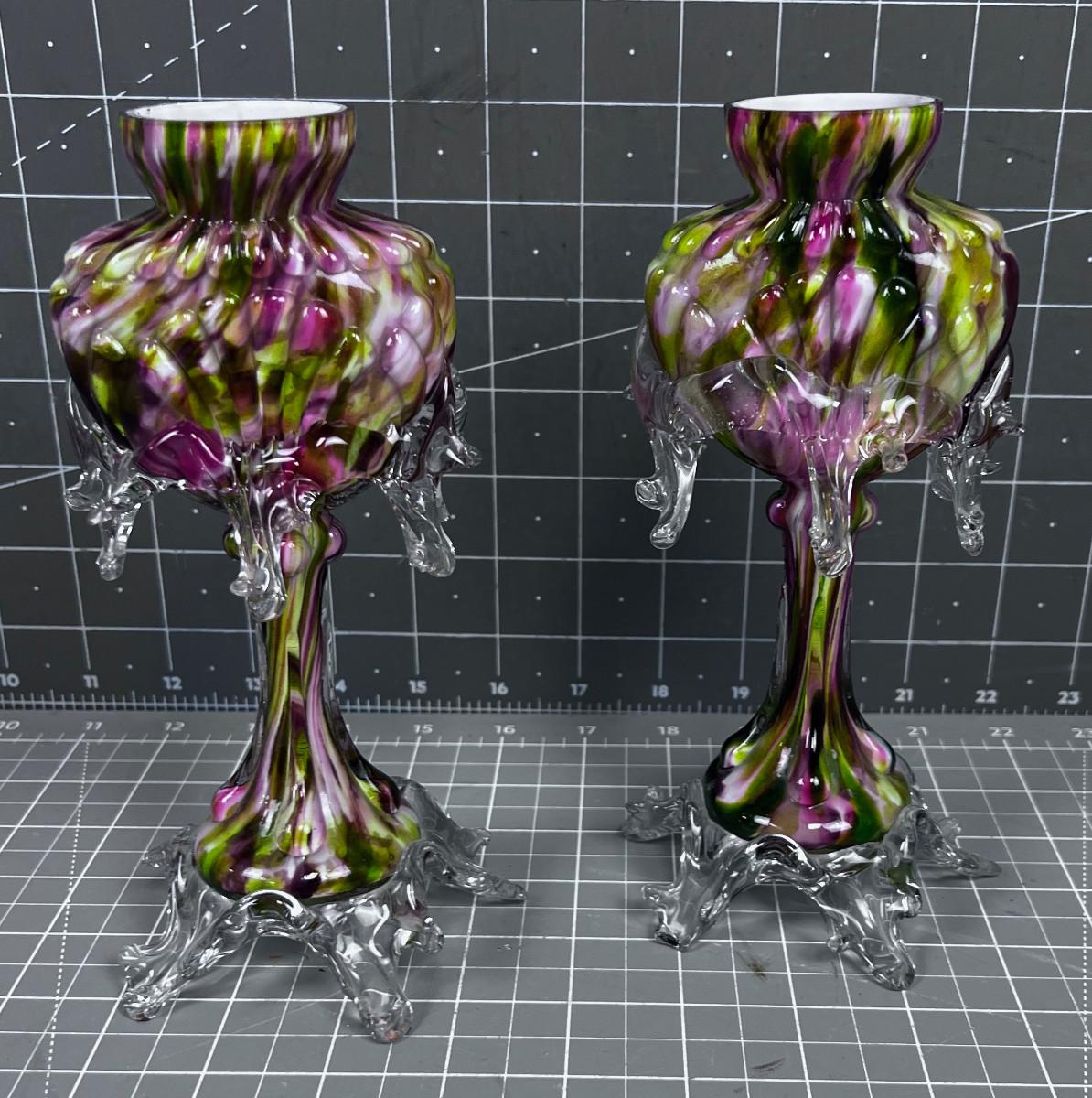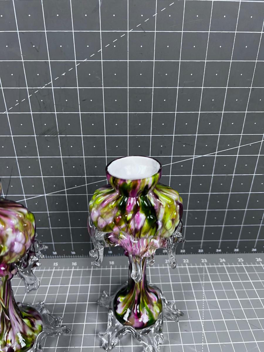 2 Hand Blown Cased Glass Candle Sticks or Bud Vase, GORGEOUS !
