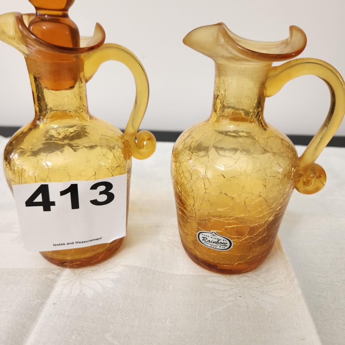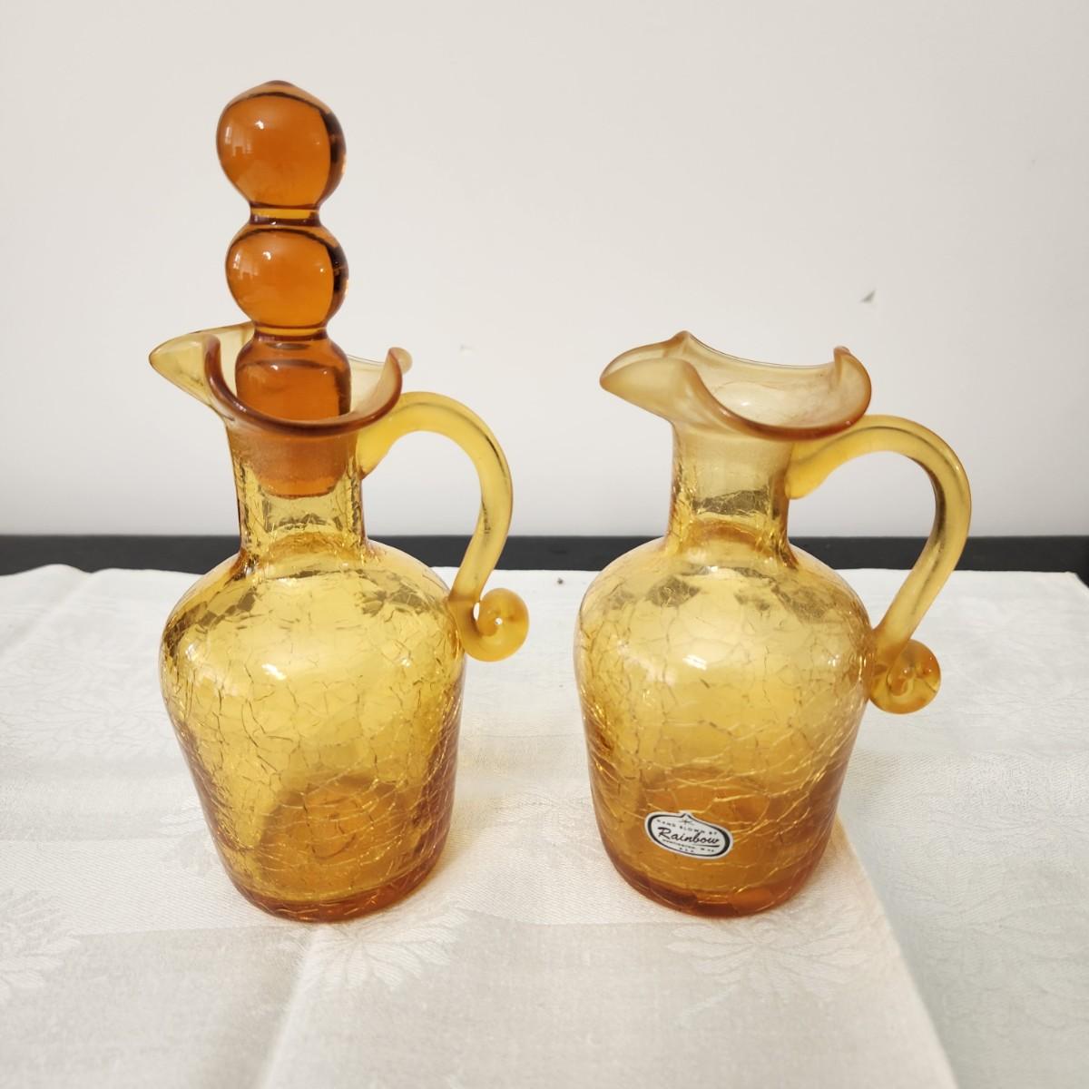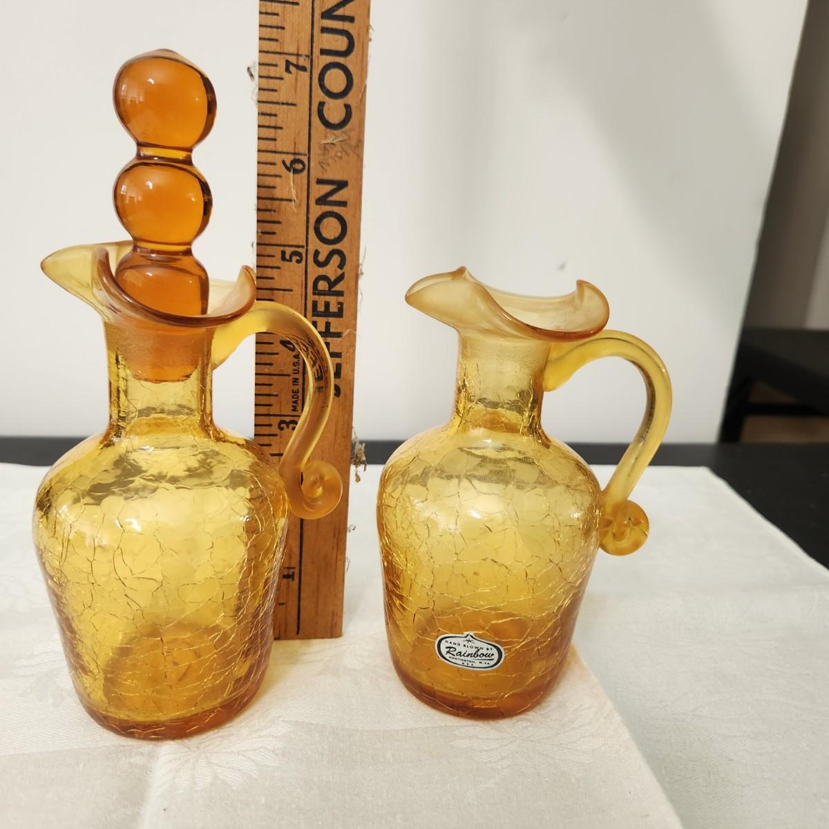 2 Hand Blown Rainbow Huntington W. Va. Crackled Glass Cruets