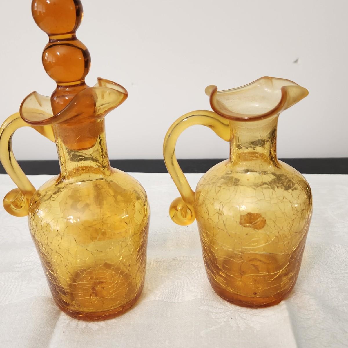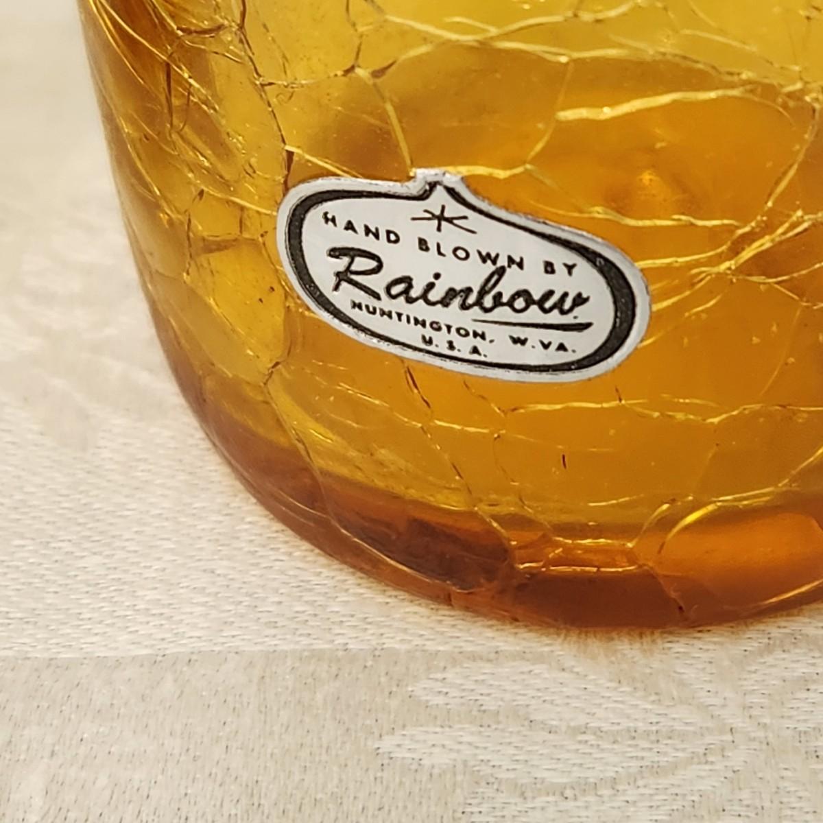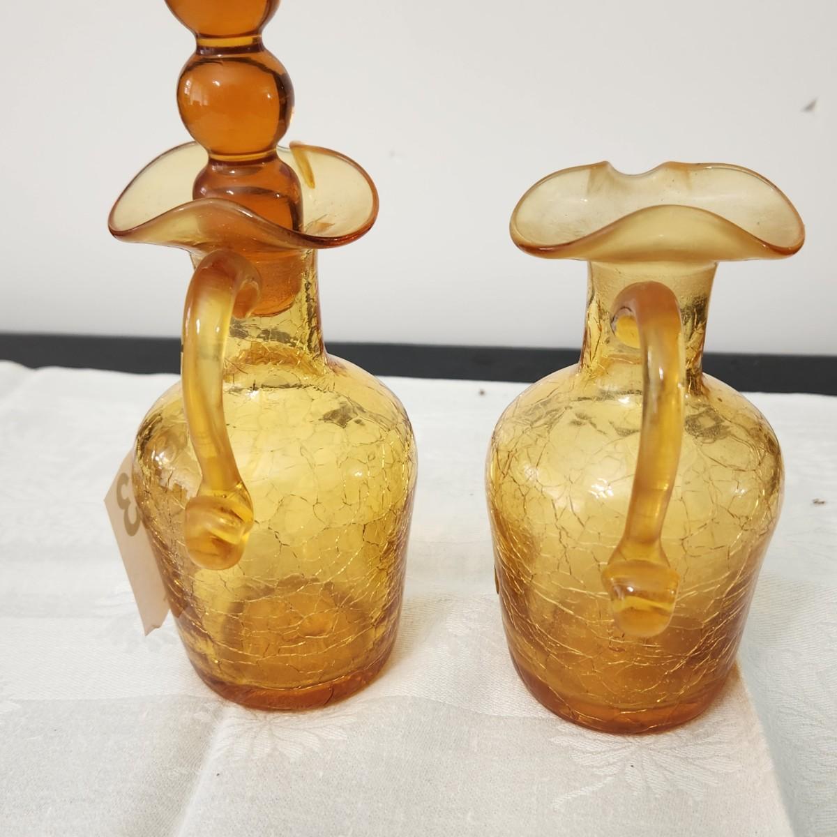 2 Hand Blown Rainbow Huntington W. Va. Crackled Glass Cruets