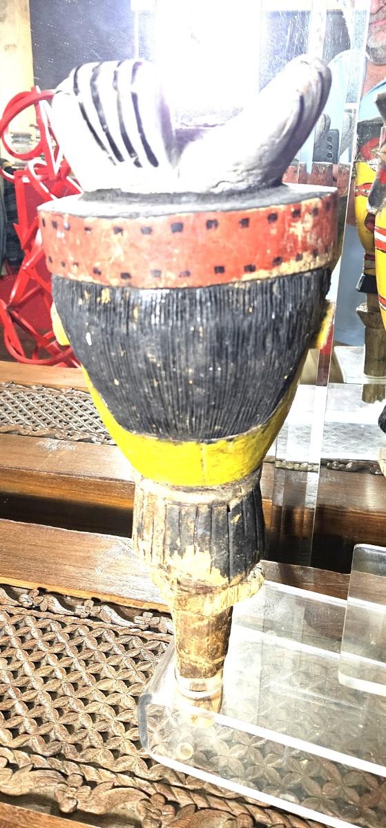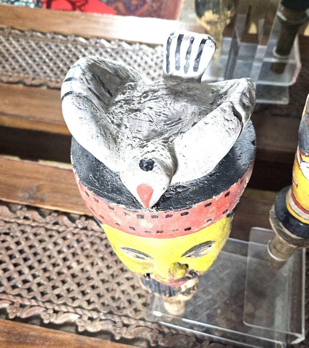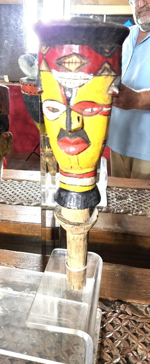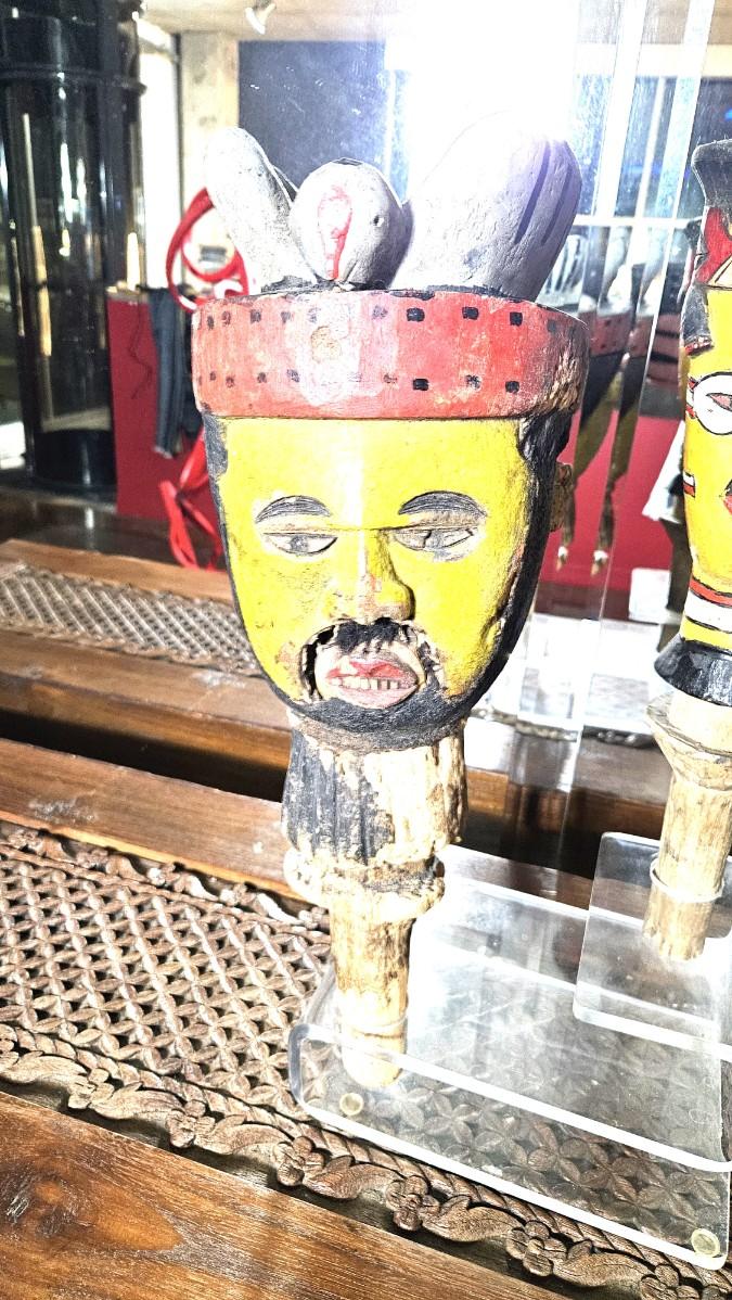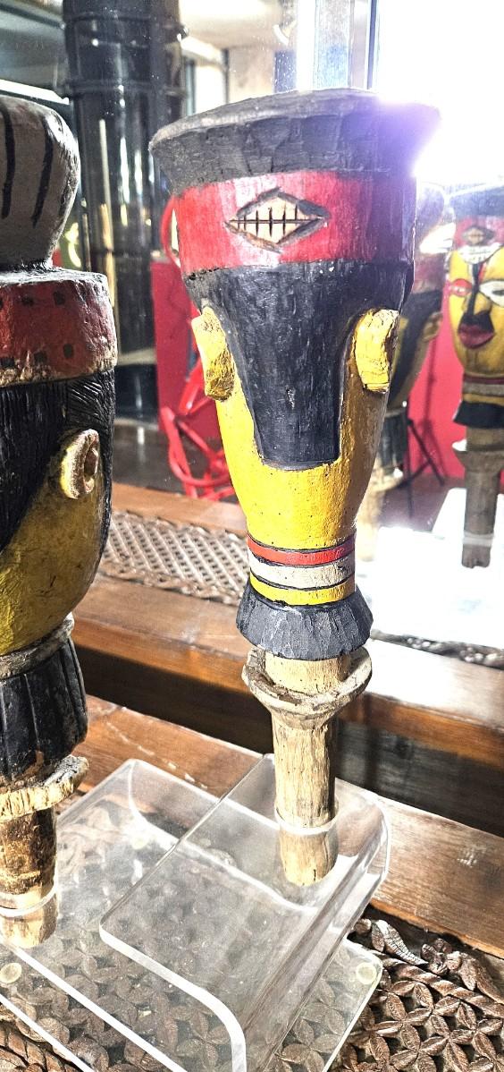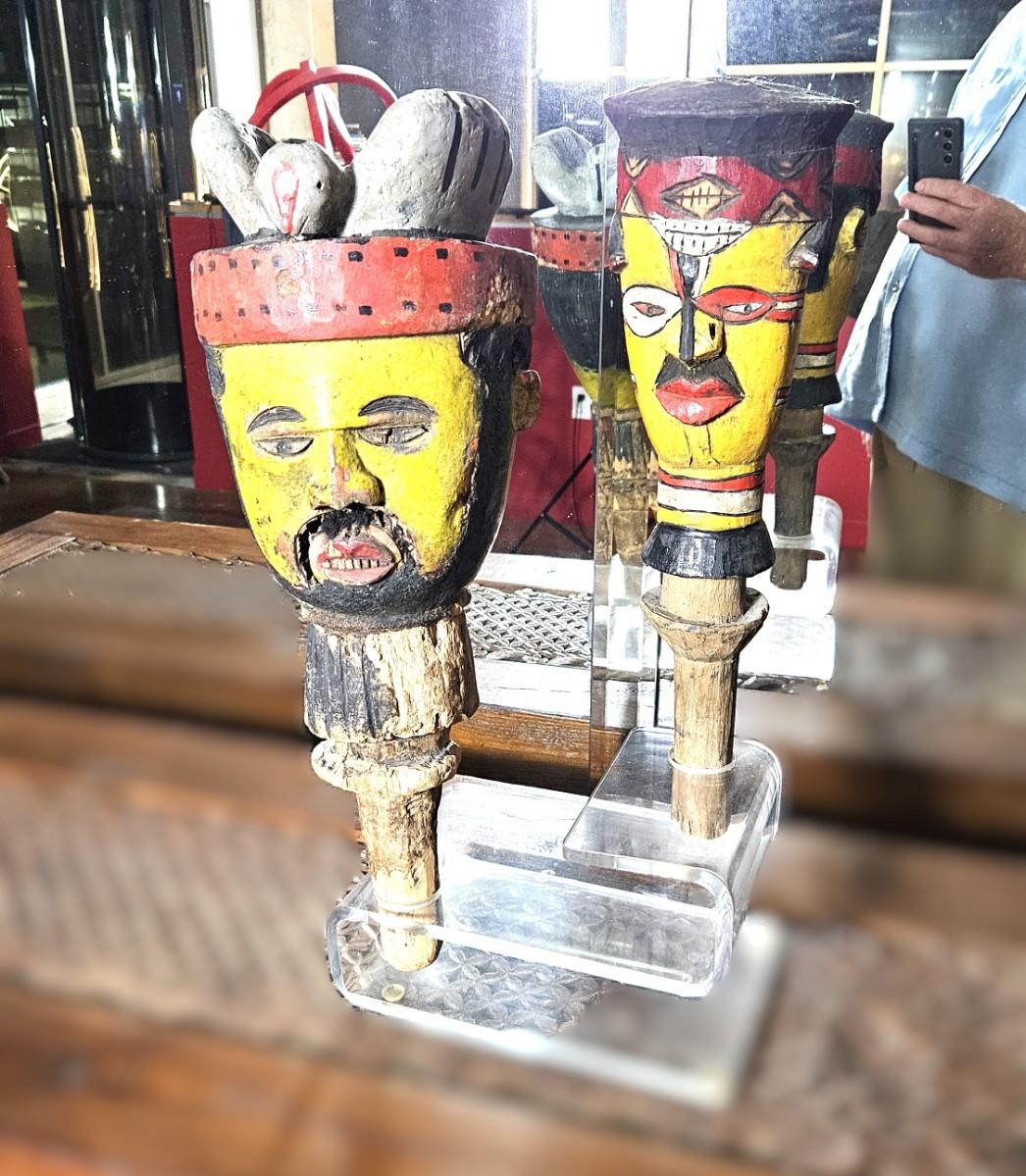 2 Hand Carved Wooden Face Pipes, 18H & 15H