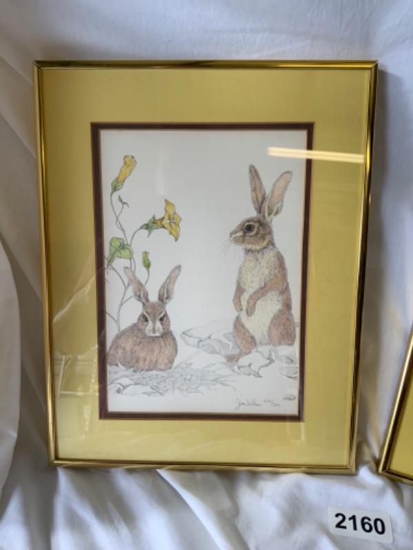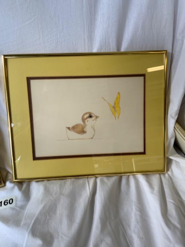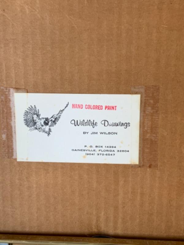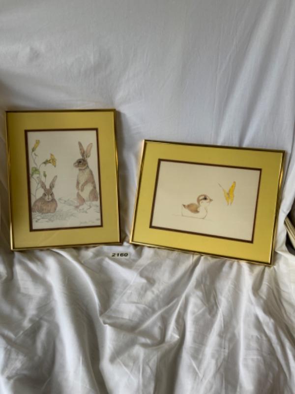 2 Hand Colored Print Wildlife Drawings Lot 2160