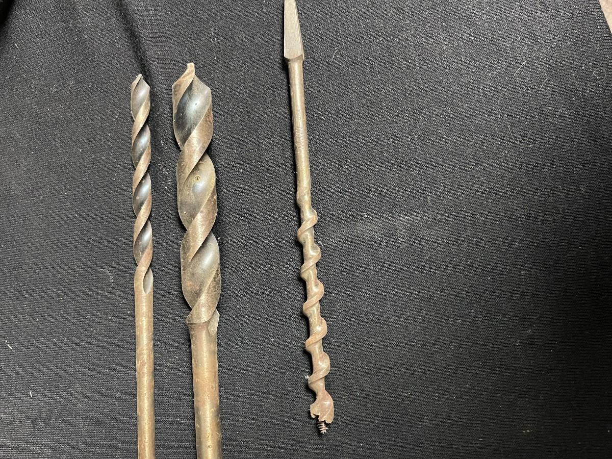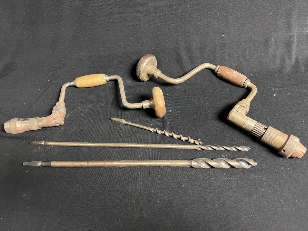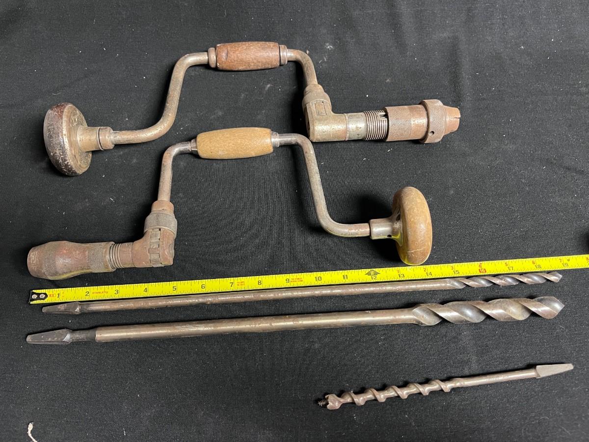 2 HAND CRANK BIT BRACES AND AUGER DRILL BITS