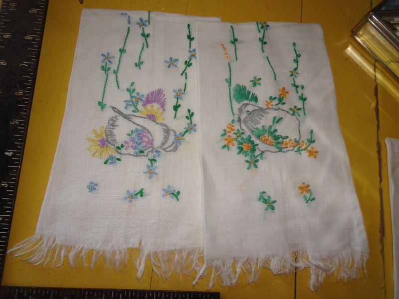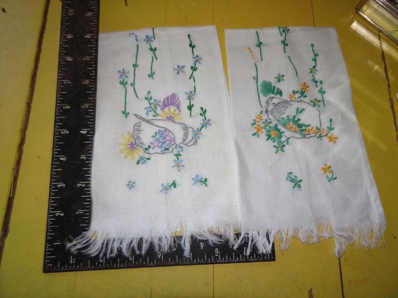 2 Hand Embroidered Dinner Napkins, Linen, Nautical