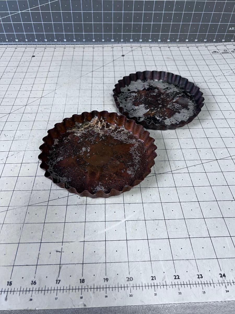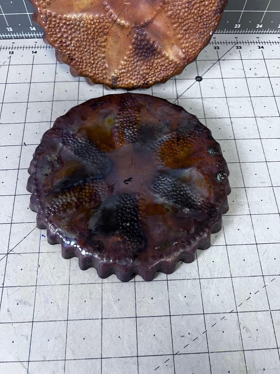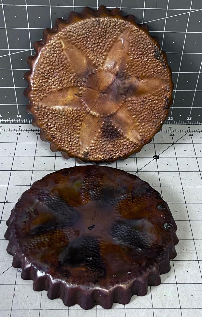2 Hand Made Hammered Copper Dishes with Fluted Edge