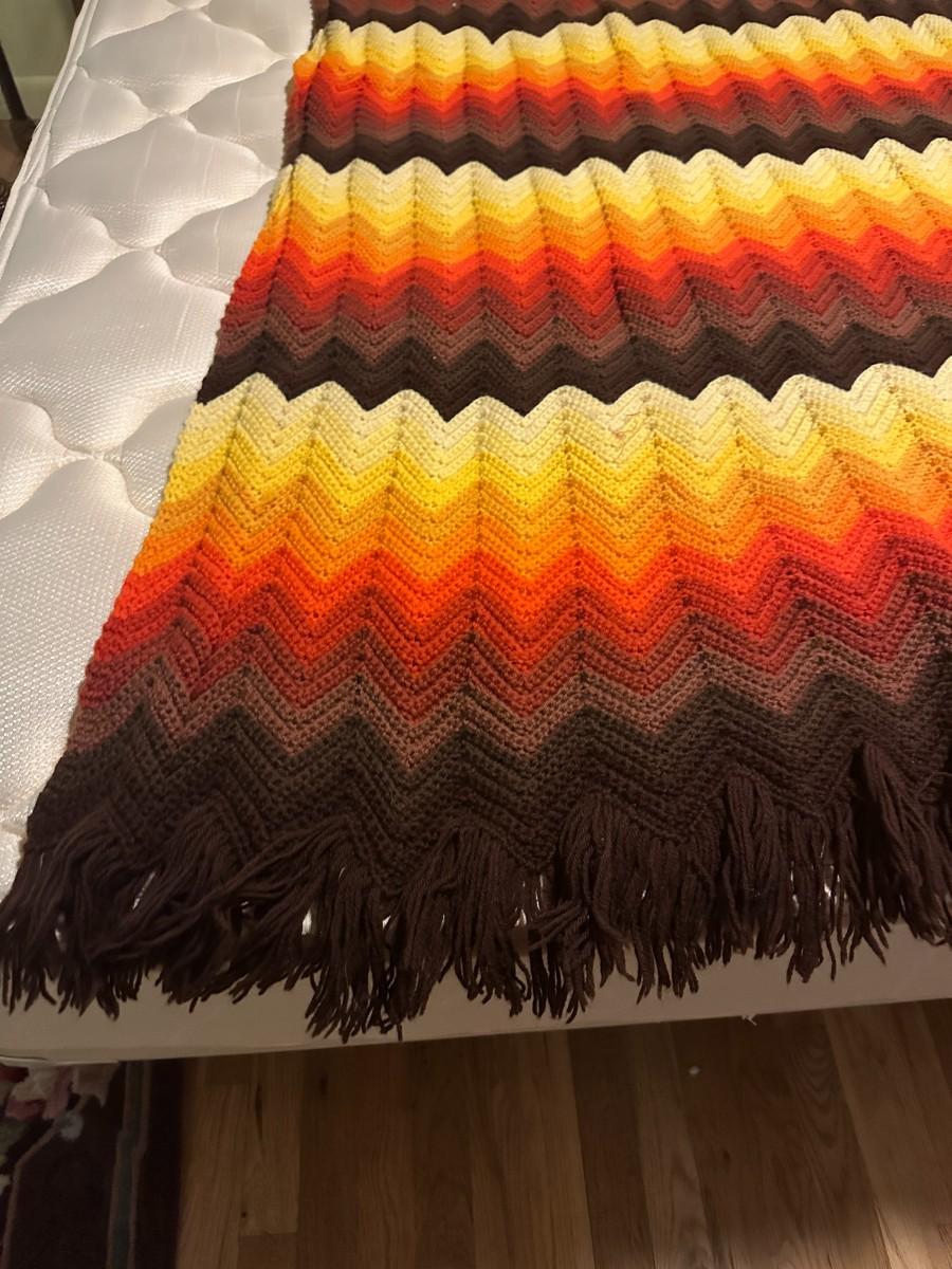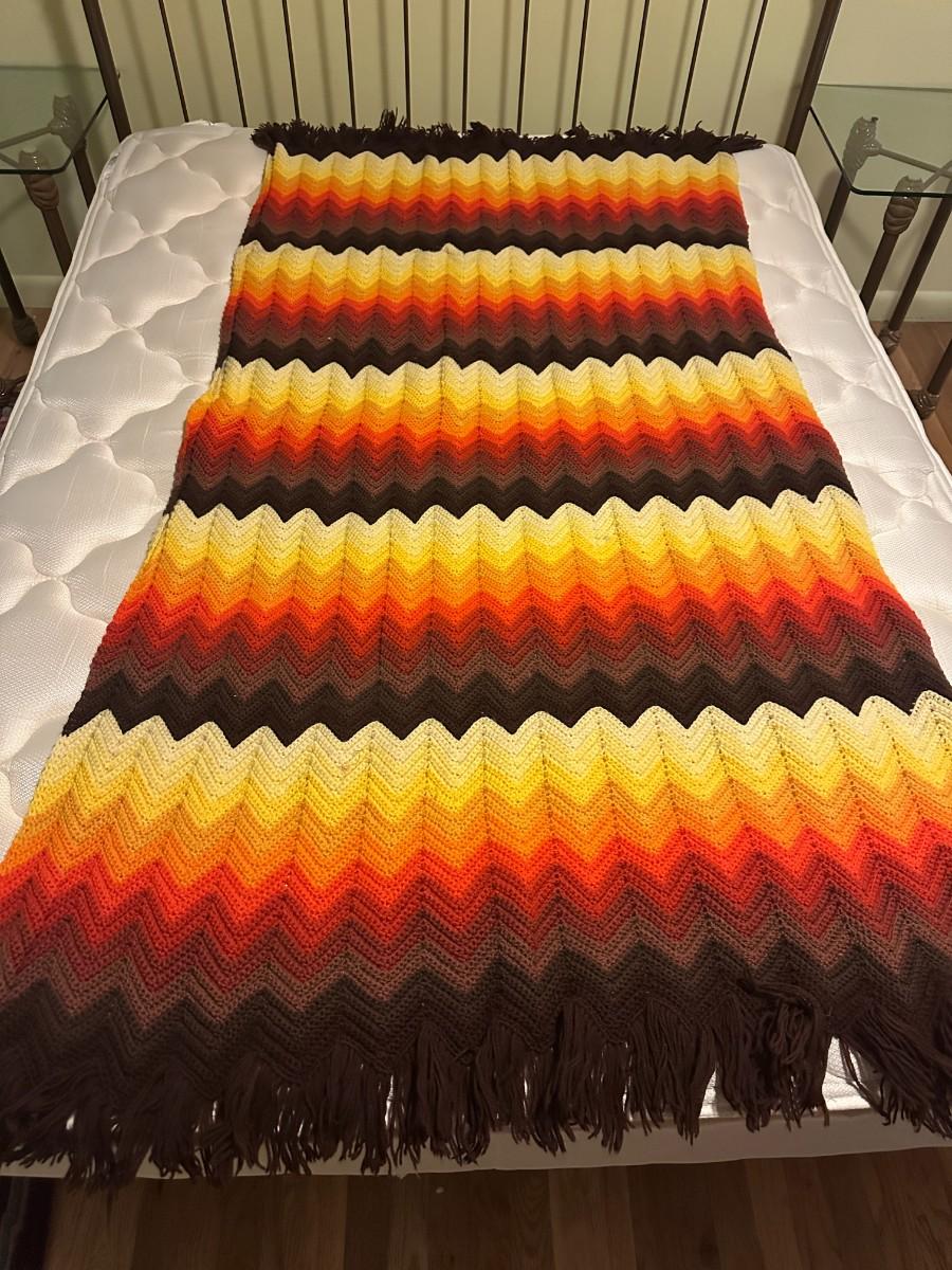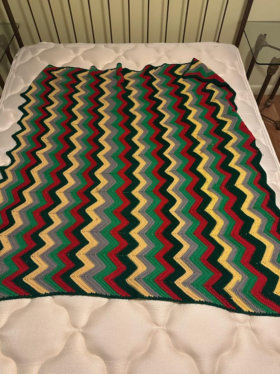 2 Handmade Crocheted Afghans Throw Size - Midcentury