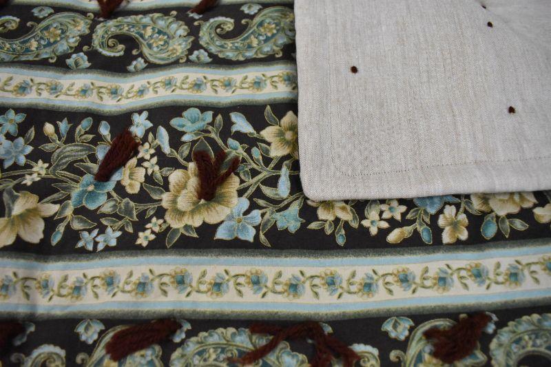 2 Handmade Lap Blankets/Tied Quilts: Maroon Paisley/Brown 42" x 41" & Floral & Paisley with Tan 41" x 42" - New