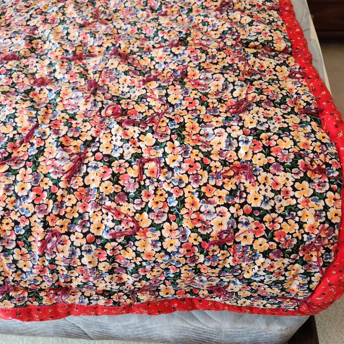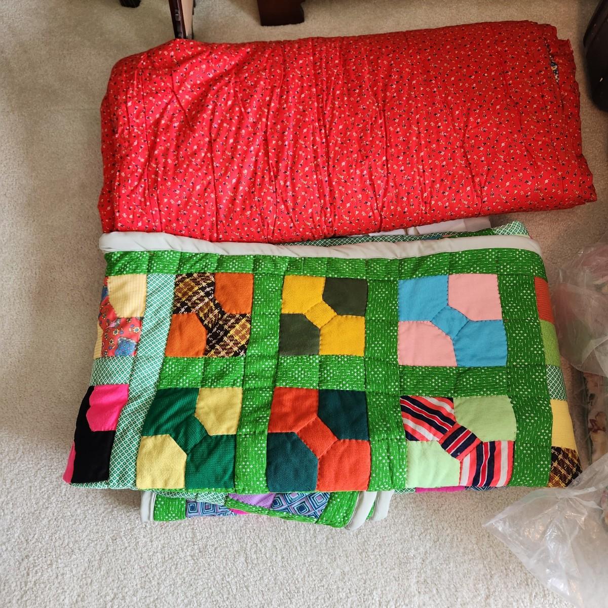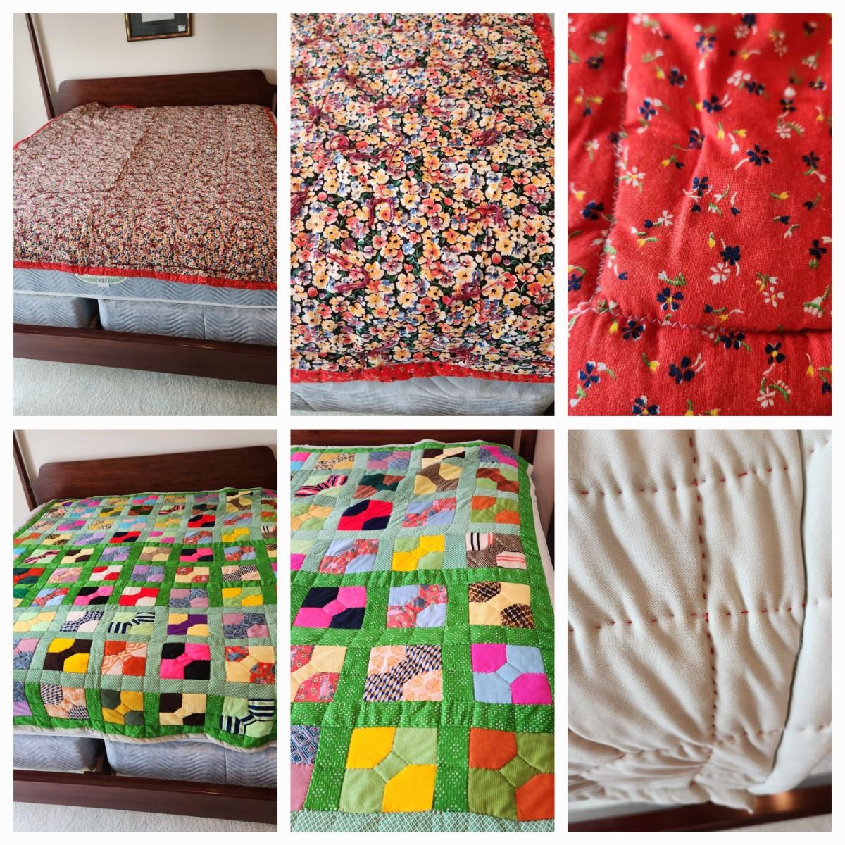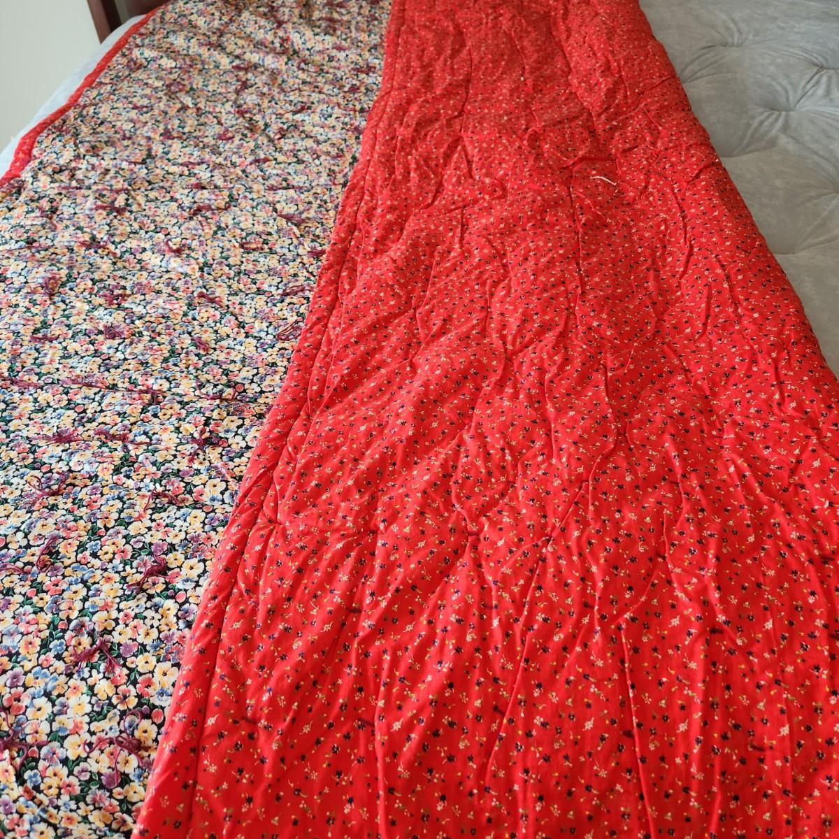 2 Handmade Quilts Red and Flowers, Patchwork