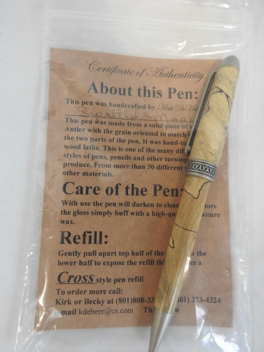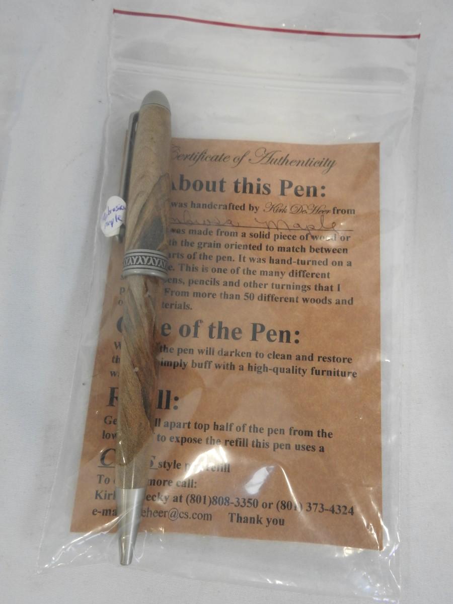 2 Handmade Wooden Pens, Kirk De Heer, With Certificates