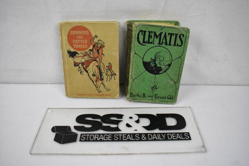 2 Hardcover Books: Cowboys and Cattle Trails (1958) & Clematis (1917) Vintage/Antique