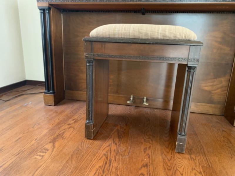 2. Hardman, Peck & Company Minipiano with bench, music, metronome and desk lamp (55.5” x 36” x 17”)