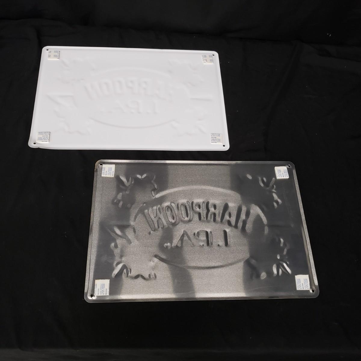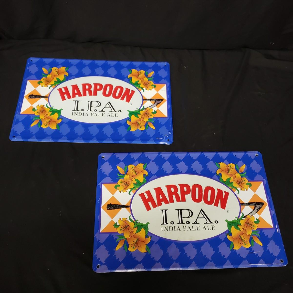 2 identical Harpoon IPA metal signs. The difference is a white and silver backings. Both signs have foam sticky pads ready for hanging. The both measure 17"x11.5". Both signs have some wear on the corners as seen in the pictures. Shipping available.