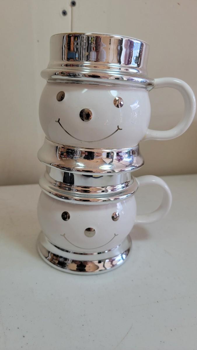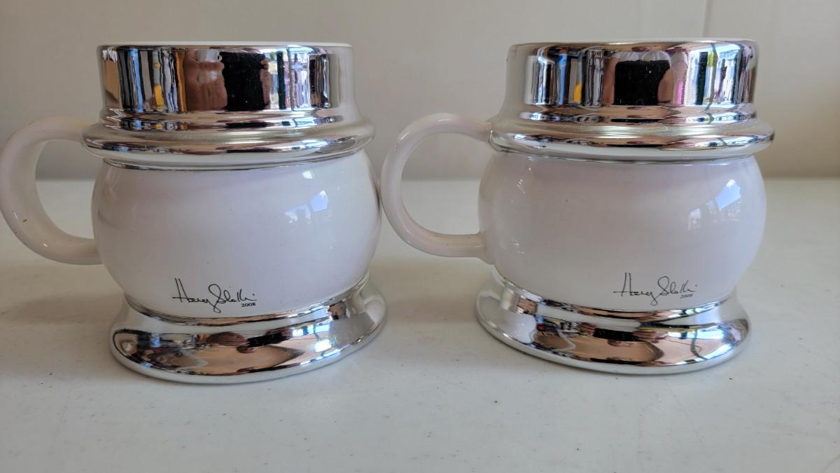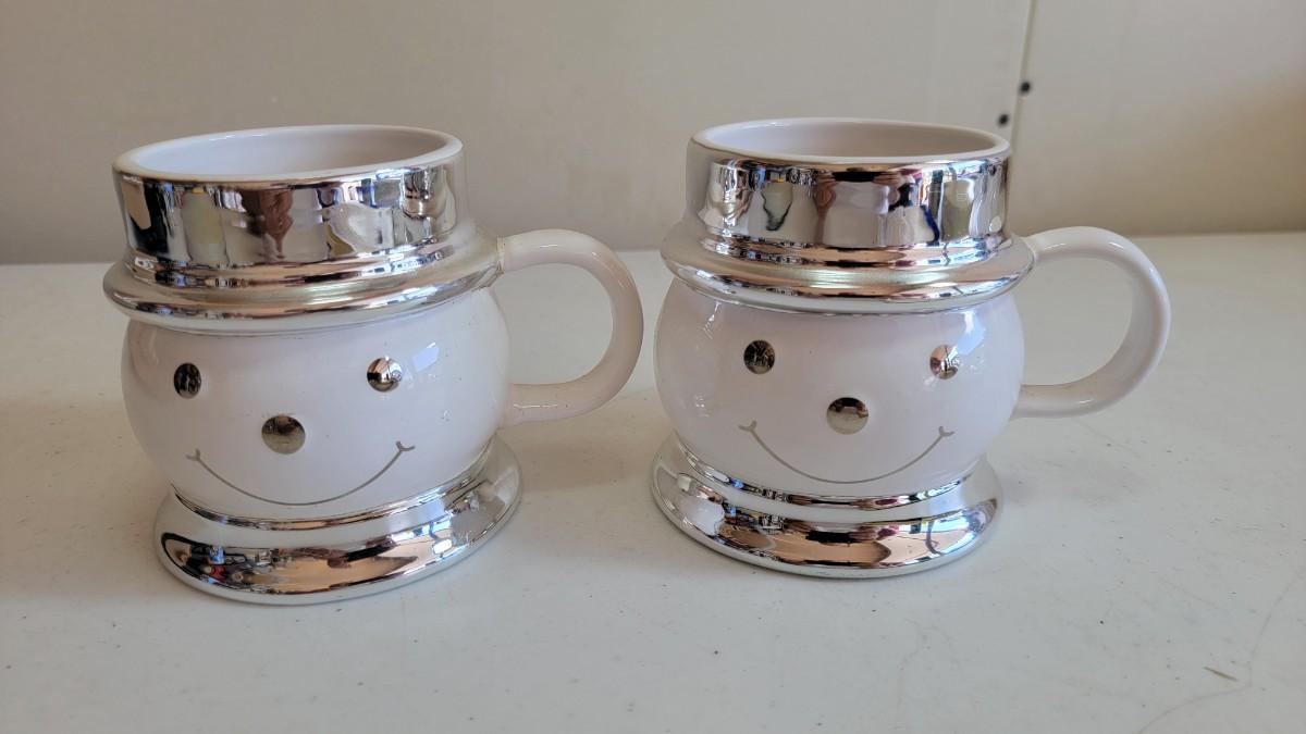 2 Harry Slatkin Signed 2008 Ceramic Snowman Mug Holiday Christmas