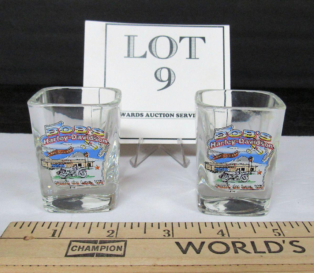 2 Heavy Square Harley Davidson, Fond du Lac Dealership Shot Glasses