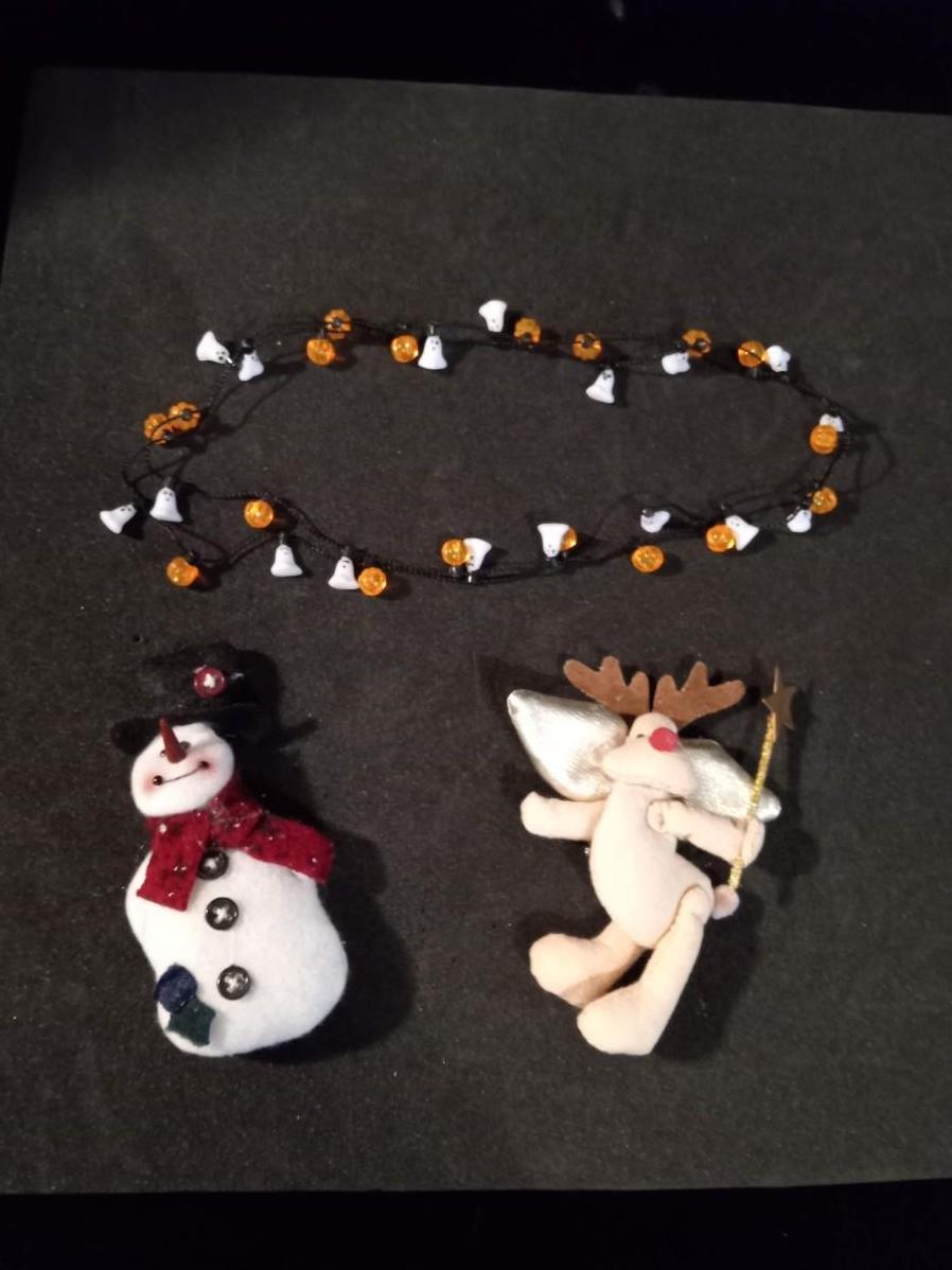 2 HOLIDAY PINS AND A HALLOWEEN NECKLACE