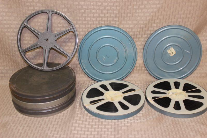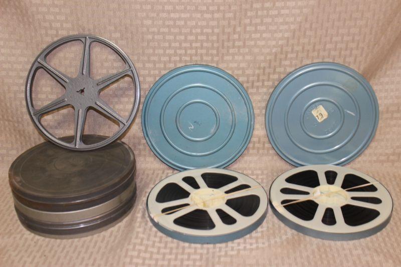 2 Home Movies from the 1950s and 3 empty reel tins.