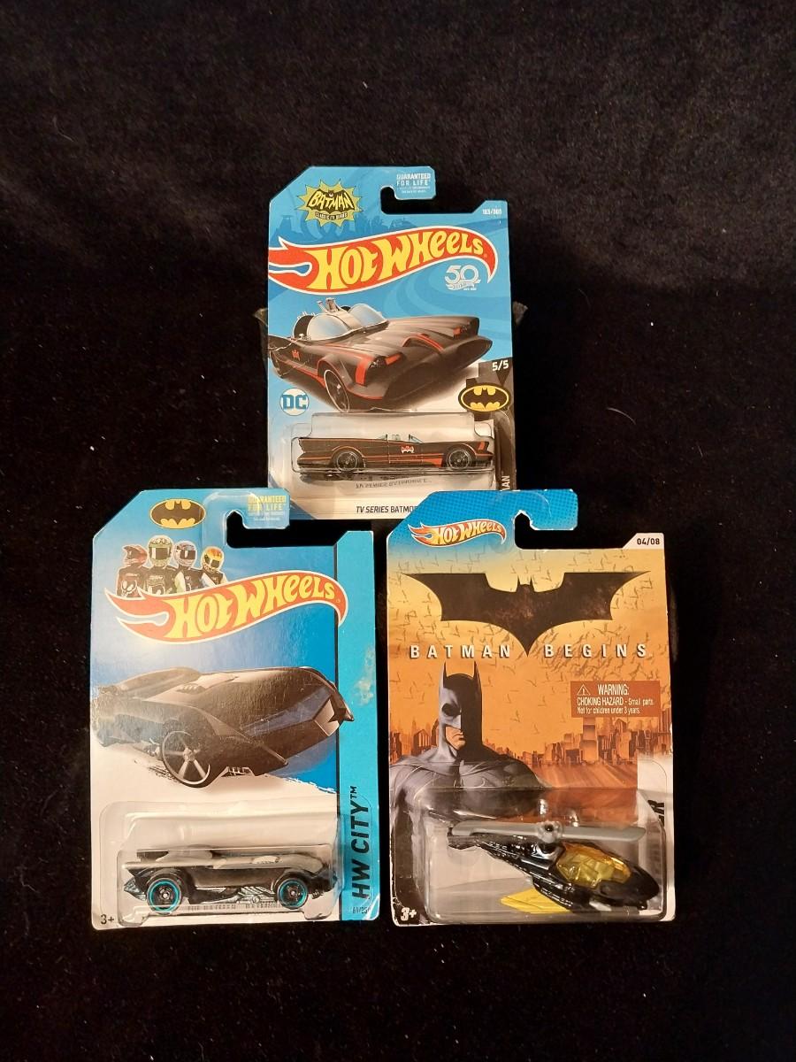 2 HOT WHEELS BATMOBILES AND 1 BATCOPTER