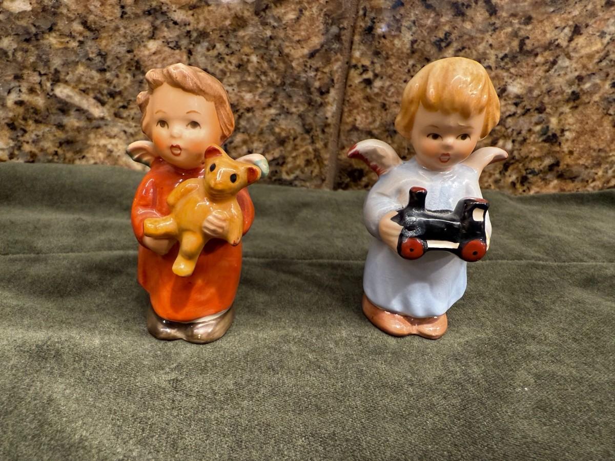 2 HUMMELS LITTLE GIRL ANGEL WITH TEDDY BEAR and #237 ANGEL TRAIN - TMK-6