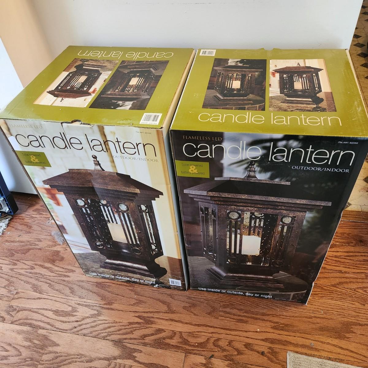 2 Indoor Outdoor LED Candle Lantern Solar & Battery Power