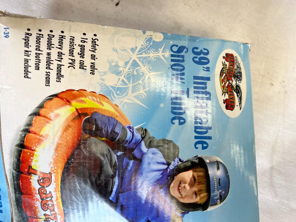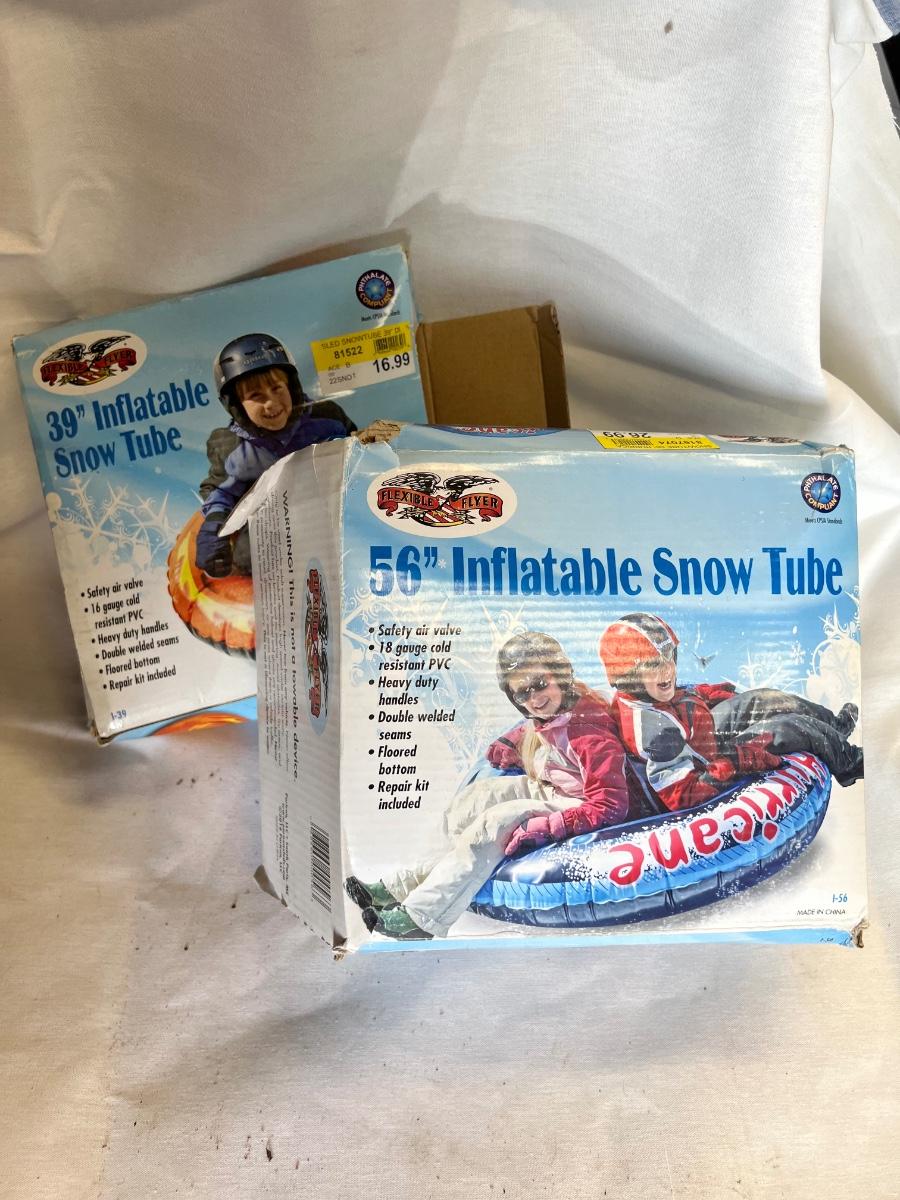 Never used or unfolded, 39” and 56” diameter snow tube for sledding