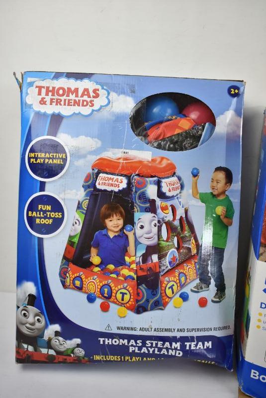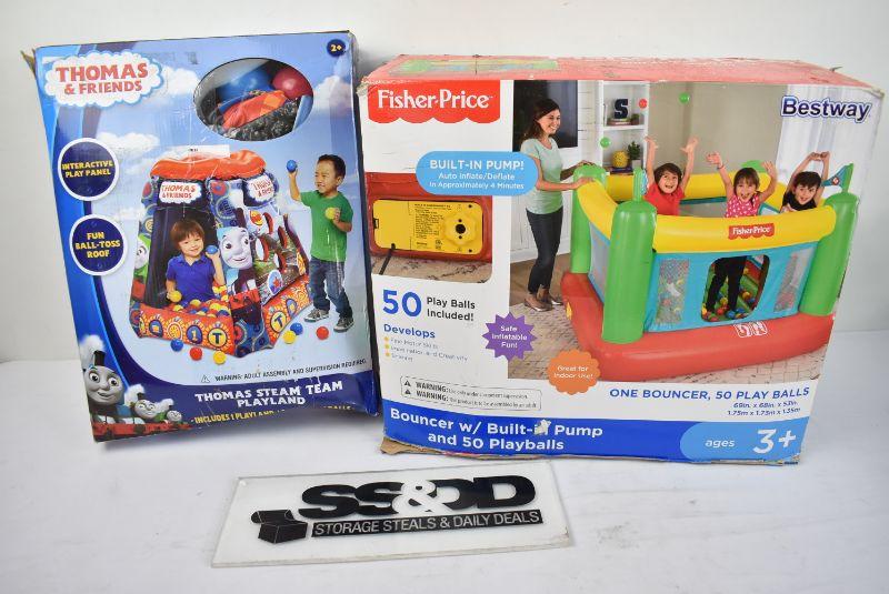 2 Inflatable Toy Sets: Thomas Steam Team Playland & Fisher-Price Bouncer with Built in Pump. Untested, as is