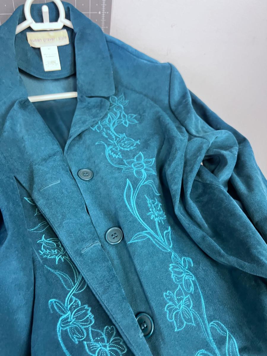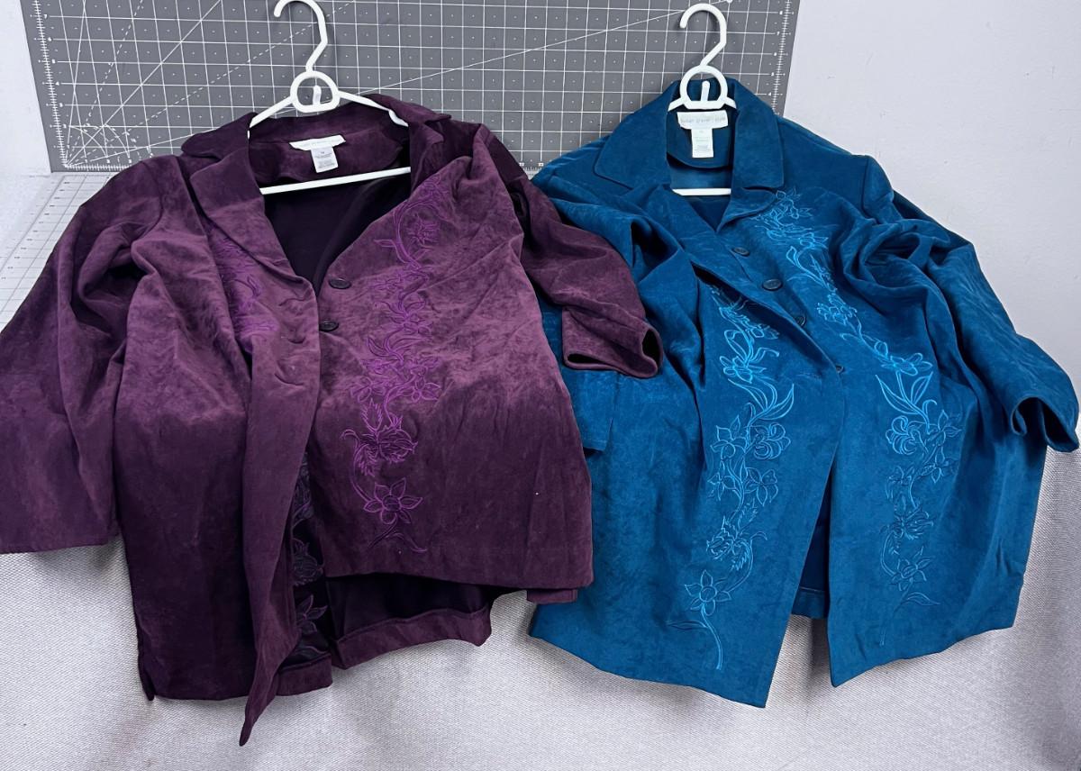 2 Jackets by Susan Graver with Embroidery, Plum and Turquoise Medium