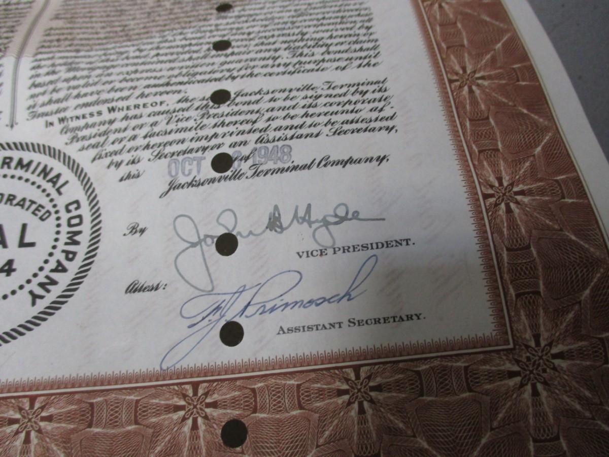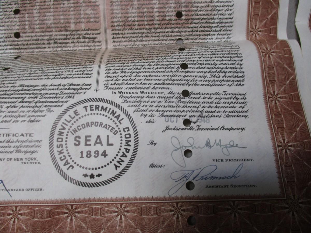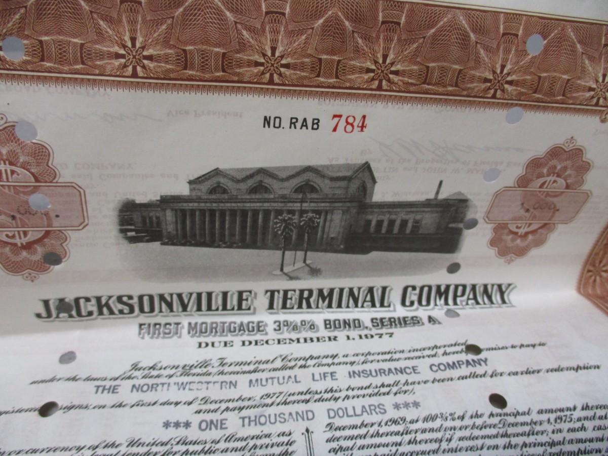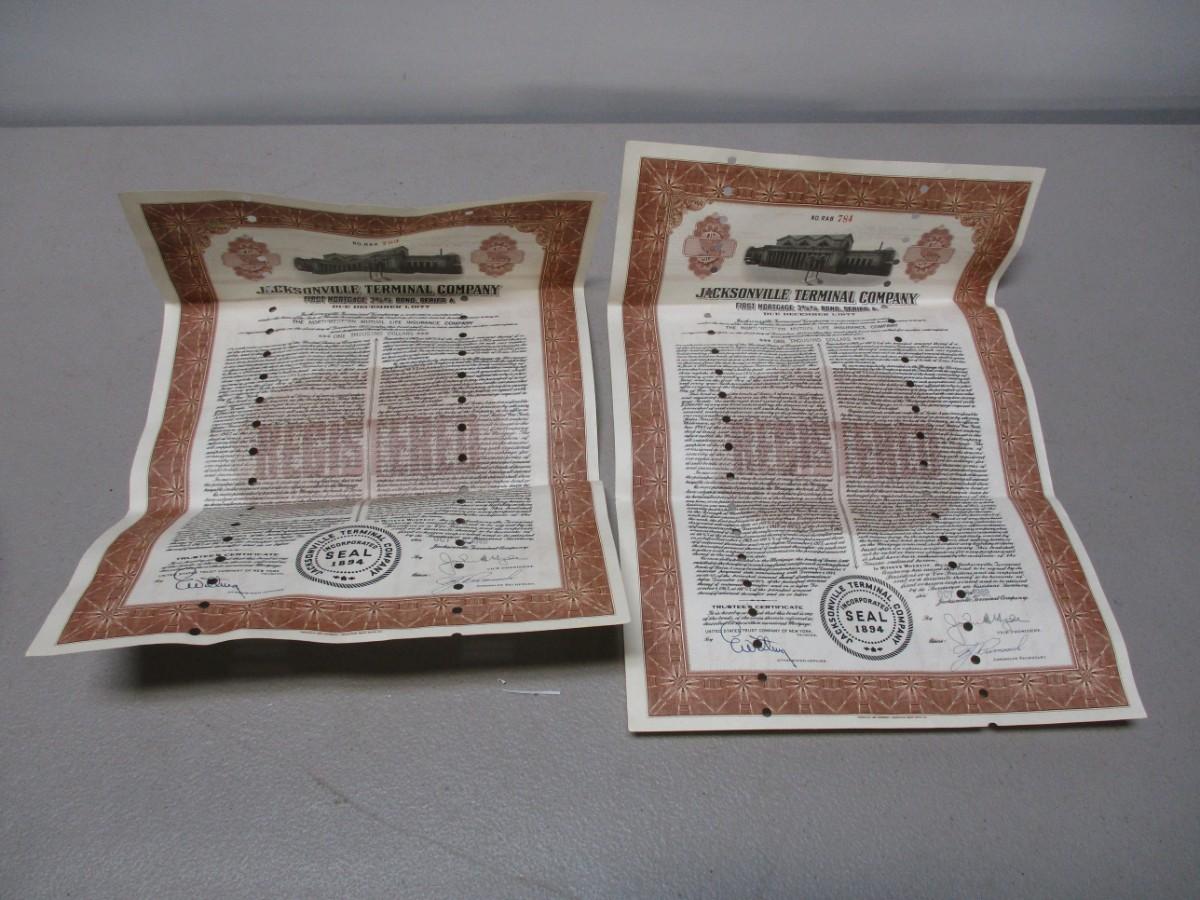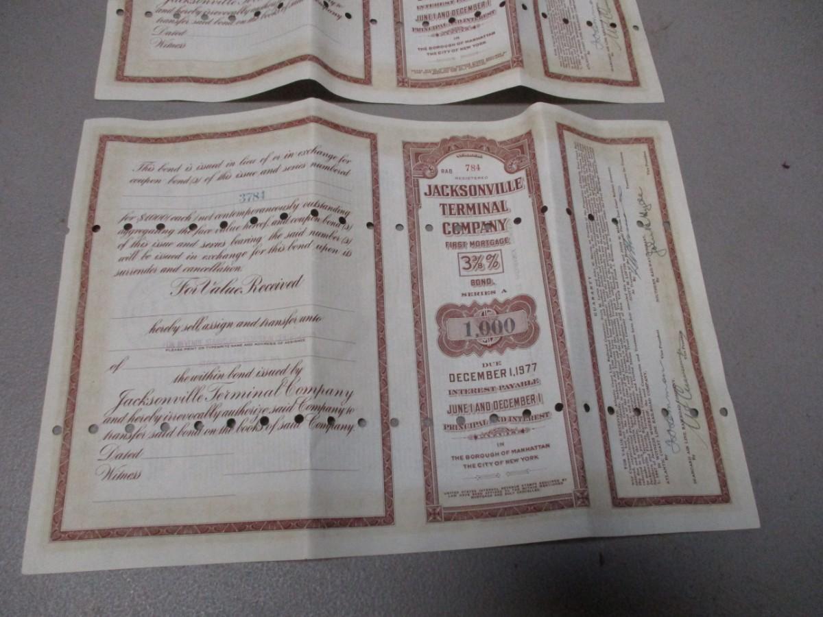 Pair of Jacksonville Terminal Company 1948 Florida $1000 Bond Certificate