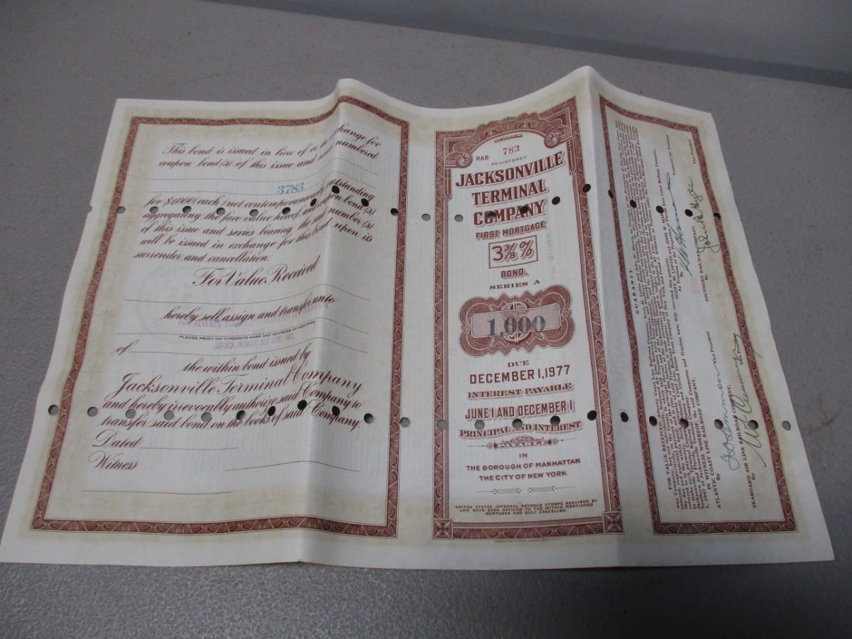 Jacksonville Terminal Company 1948 Florida $1000 Bond Certificate