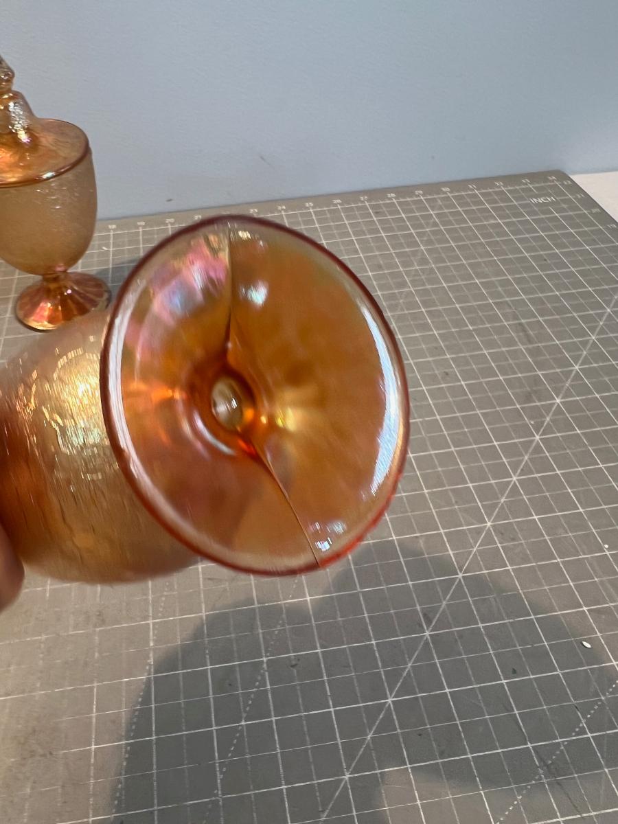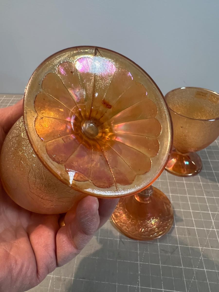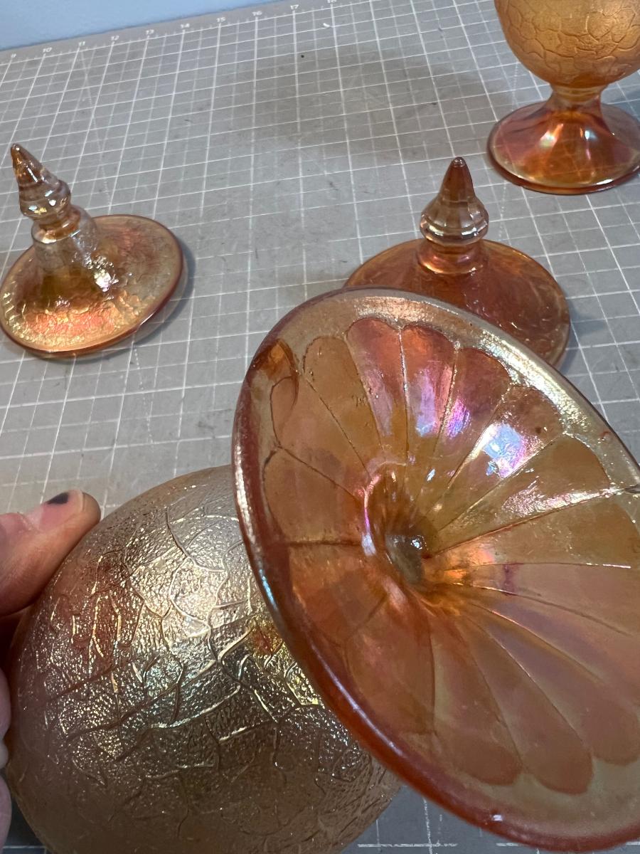 2 Jeanette Carnival Glass   Crackel Lidded Candy Jars