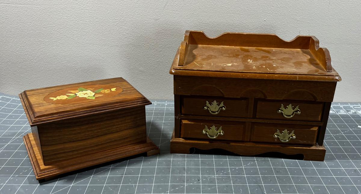 2 Jewelry Boxes with Inlayed Wood