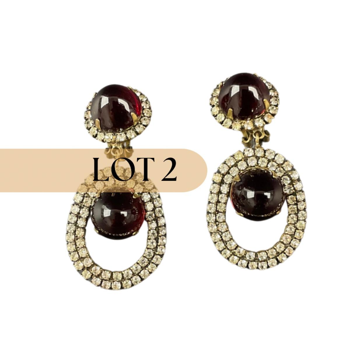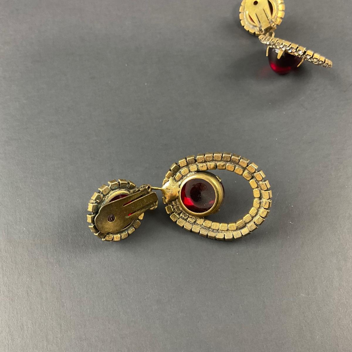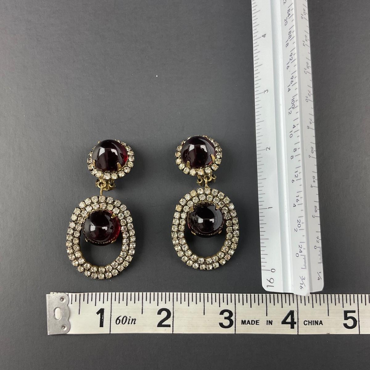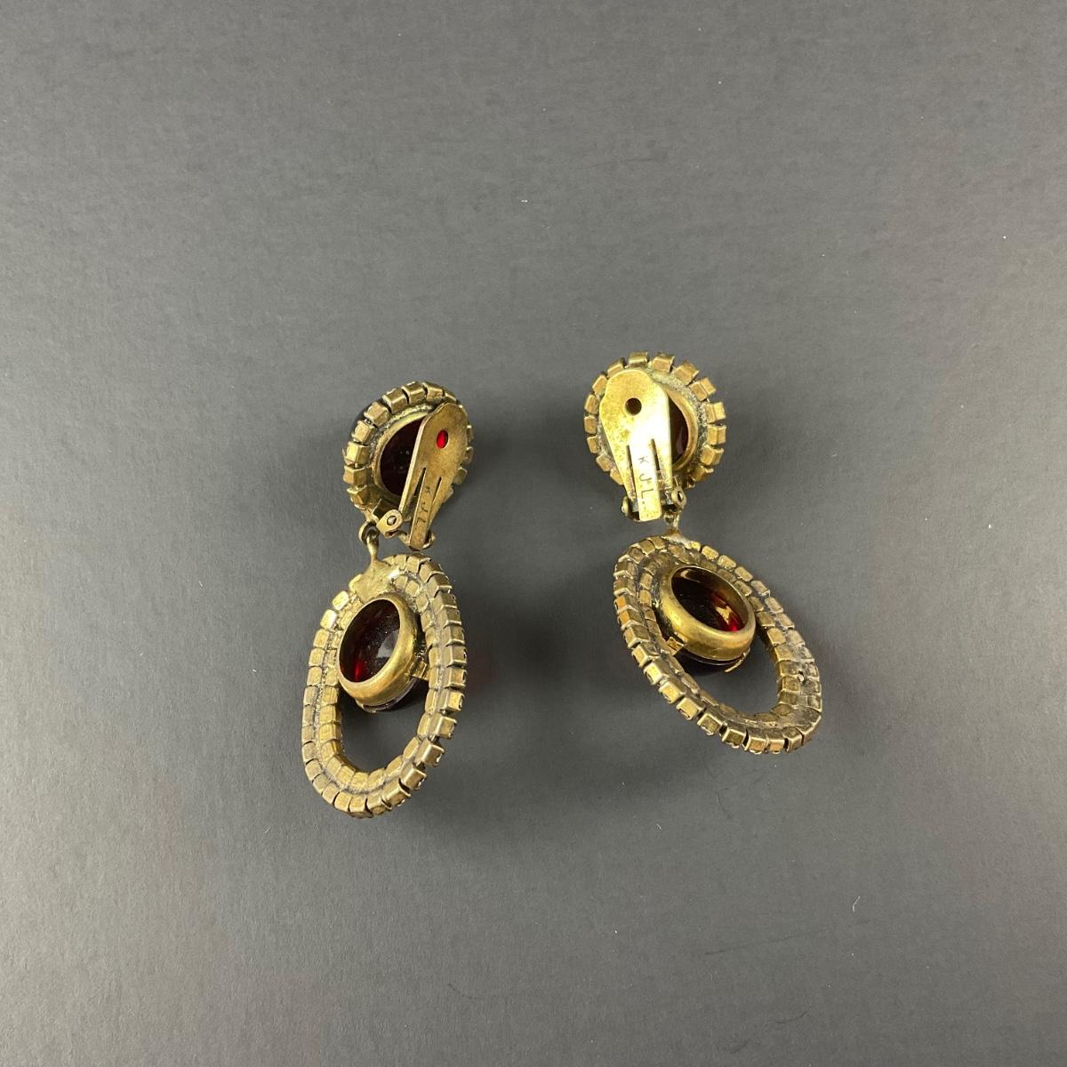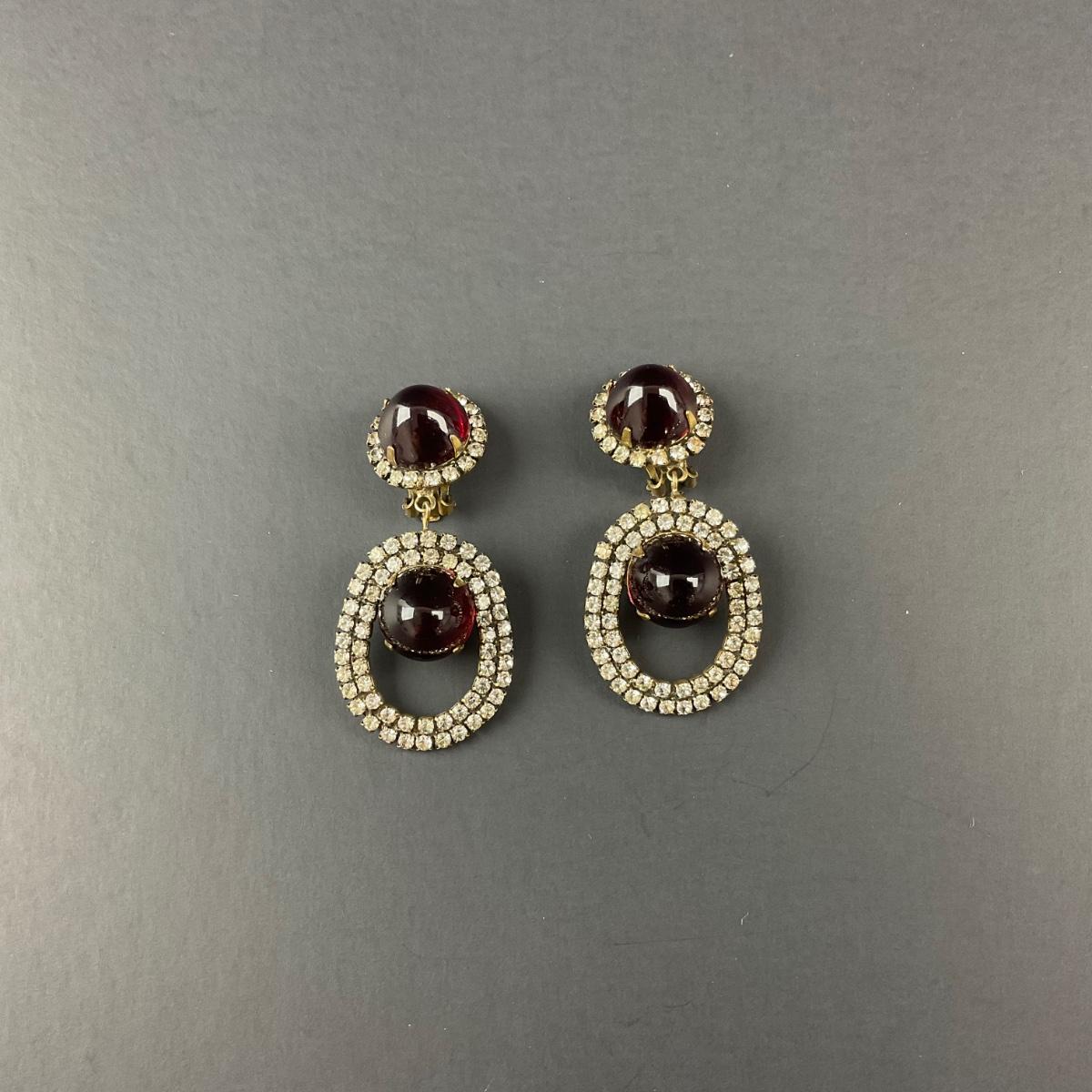 -2- KENNETH JAY LANE | 1960’s Ruby Cabochon Drop Clip Earrings | Marked