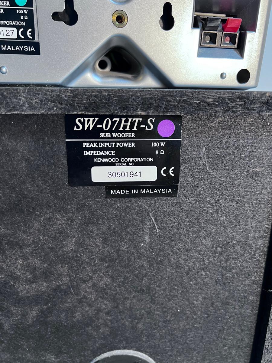 2 Kenwood Speakers, A Subwoofer and a Center Speaker
